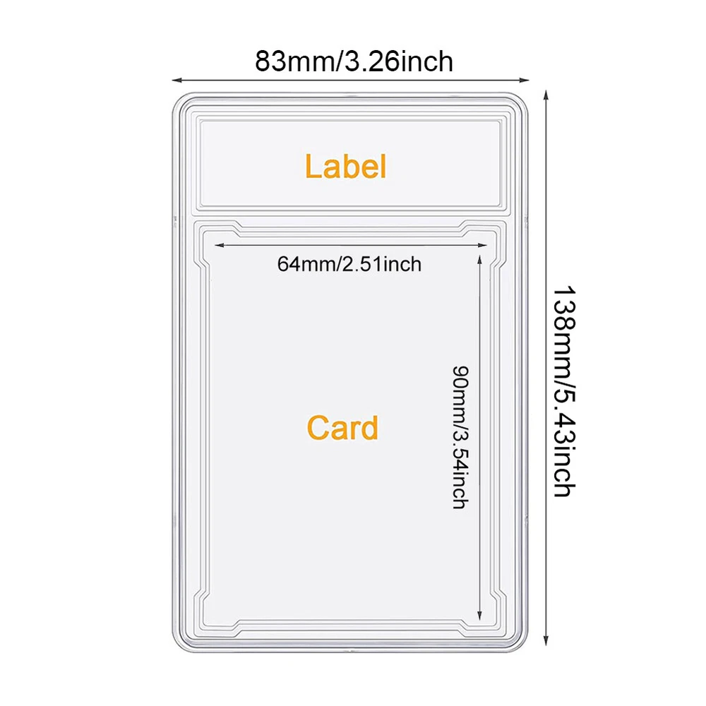 You may also like 35-130PT Magnetic Trading Sports Card Holders Protector One-Touch Display Case 10.09 USD Free shipping Aluminum Magnetic Slab Case W/ Hidden Stand| Graded Card Guard Protector Card 20.99 USD Free shipping Display Stand & 35PT Magnetic Card Case For Graded Card PSA SGC Card Slab Holder 12.09 USD Free shipping Display Stand & 35PT Magnetic Card Case For PSA SGC Graded Card Card Slab Holder 12.09 USD Free shipping 10-50Pcs Card Holder For Baseball Trading Sports Cards 35PT Hard Case Protector 8.79 USD Free shipping Trading Cards Sleeves Hard Acrylic Card Protector Clear Card Brick For Baseball 9.63 USD Free shipping Magnetic Trading Card Holders Case Graded Card Slab Display Box Protector Stand 17.89 USD Free shipping Card Sleeves Baseball Card Sleeves Hard Plastic Trading Card Protectors Holder 9.59 USD Free shipping Magnetic Metal Card Holders Case For PSA Graded Card Slab Display Box Protector 17.79 USD Free shipping 1-5X Magnetic Slab Case Protector For PSA Graded Cards Stackable Metal Bumper 20.78 USD Free shipping 1-5X For PSA Magnetic Slab Case Protector Graded Cards | Stackable Metal Bumper 17.85 USD Free shipping 1-100PCS Empty Graded Card Holder Style Slab Compatible For PSA Cards 35-130PT 8.71 USD Free shipping Product Description Protect your card carefully: you put your cards into the card display cases, protecting your cards from water, sweat, bending and scratching, which can keep your card in nice condition, and your beloved cards are not faded easily Convenient for you to identity: the sports card storage is clear, so it is convenient for you to tell the card you want to use; The upper part of the holder can be applied to labeling or write something with markers, helping you remember the date, the meaning of the cards and so on; Please notice that the markers are not included in your package Ideal present for card collectors: you can give the basketball cards boxes to your friends, relatives, classmates or colleague and other people who are the card collectors; They will be delightful for making their cards in order and keeping cards away from fading or folding Specification: Color: Clear Material :Plastic Outer size : 8.3*13.8cm Inner size : 6.4*9.0cm Wide Application: Perfectly compatible with baseball cards, basketball cards, football cards, hockey cards, MTG cards, YuGiOh cards, sport cards and more. Package included: 1 -100x Trading Cards Protector Case