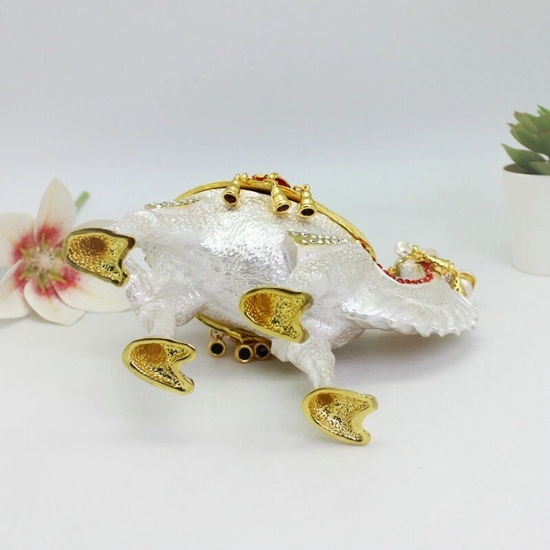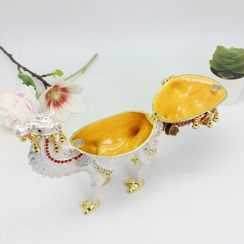 We are dedicated to crafting each exquisite jewelry box and ornament by hand with masterful artistry. Enamel and Crystal A fusion of tradition and modernity Adorning every memorable moment in your life Give an elegant gift to the one who matters most A treasure to be cherished for a lifetime. 【 Materials】Pewter Enamel Size:17x16.cm Made in GuangDong 【 Package】Gift Box 100% Brand New Handmade Pewter Enamel Trinket Box Handmade by masters with 20+ Years Experience Can be use for Birthday Gifts,Wedding Favor,Christmas Gifts,Home Decorative This collectible trinket box is meticulously crafted from fine pewter I t is hand enameled and then lavishly inlaid with crystals by skilled artisans. Opens on a hinge to reveal the hand painted interior Magnetic closure to keep the box shut securely , T his jewelry trinket box is made of a pewter-like alloy and finished with a high polished finish Versatile Use: Perfect as both a decorative piece and a functional trinket box I deal for storing small precious items while bringing fortune symbolism
