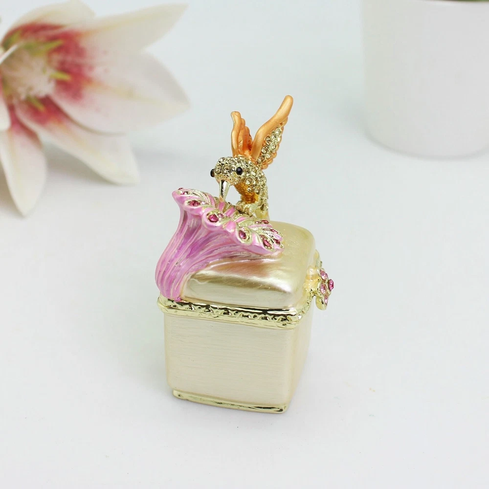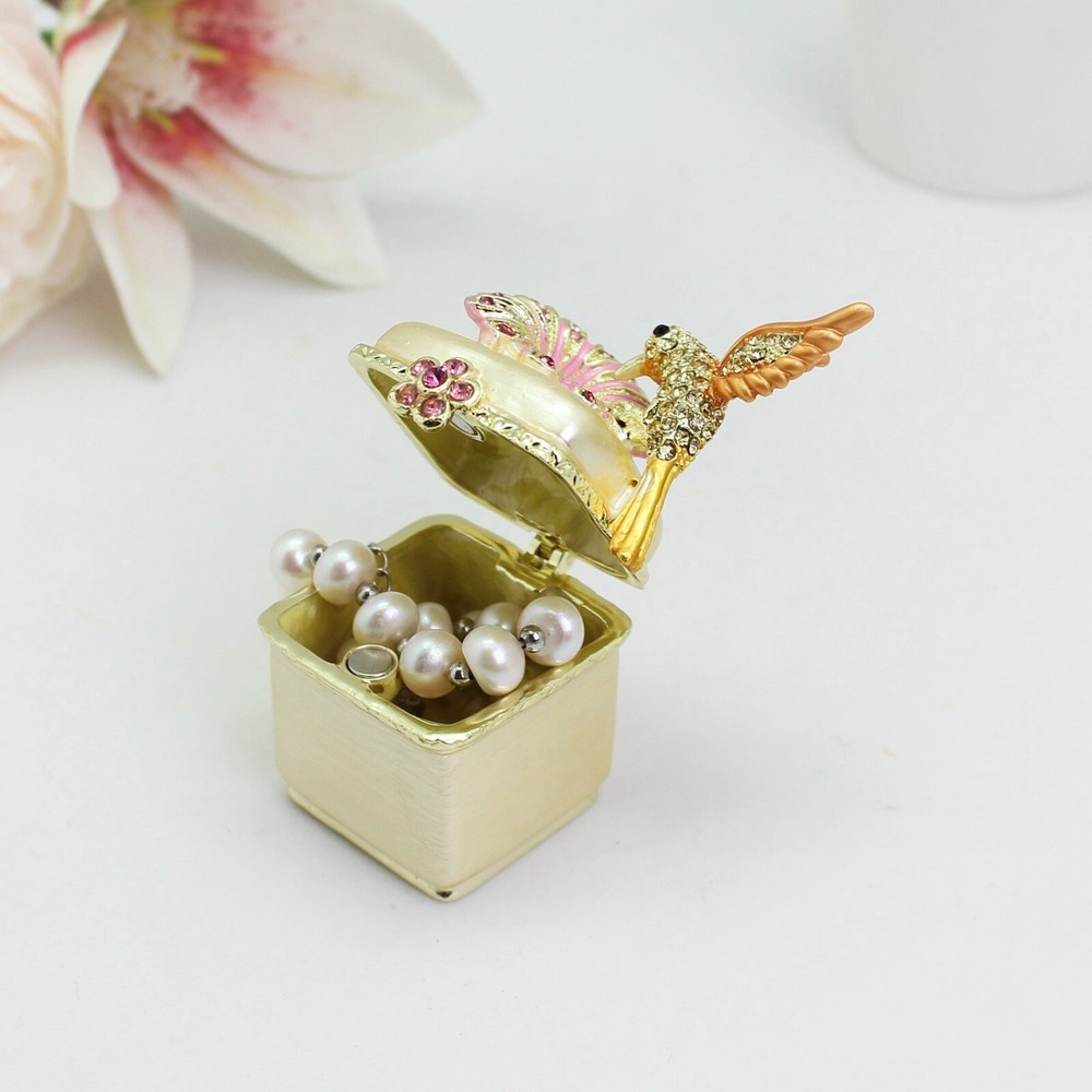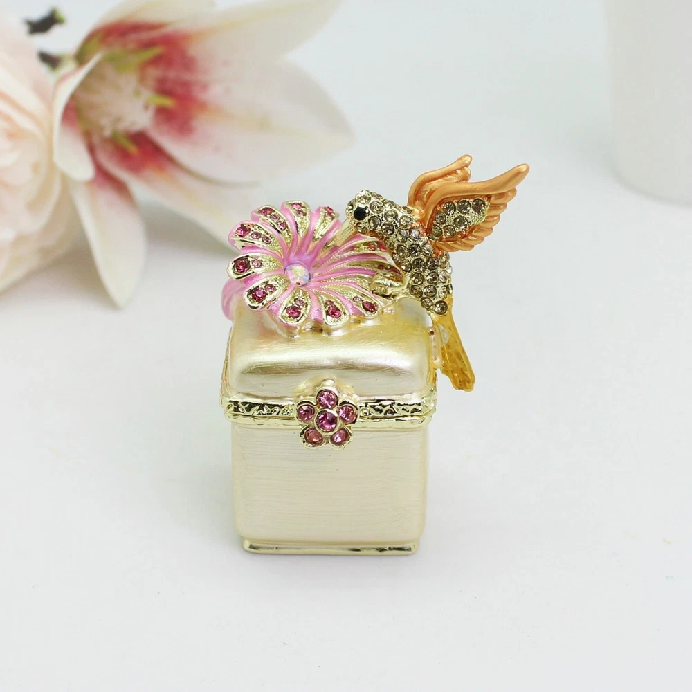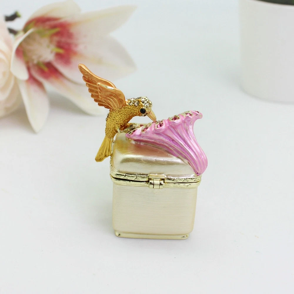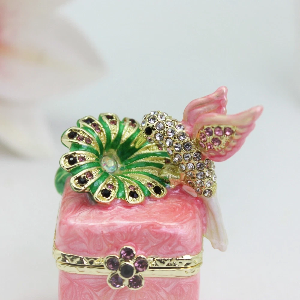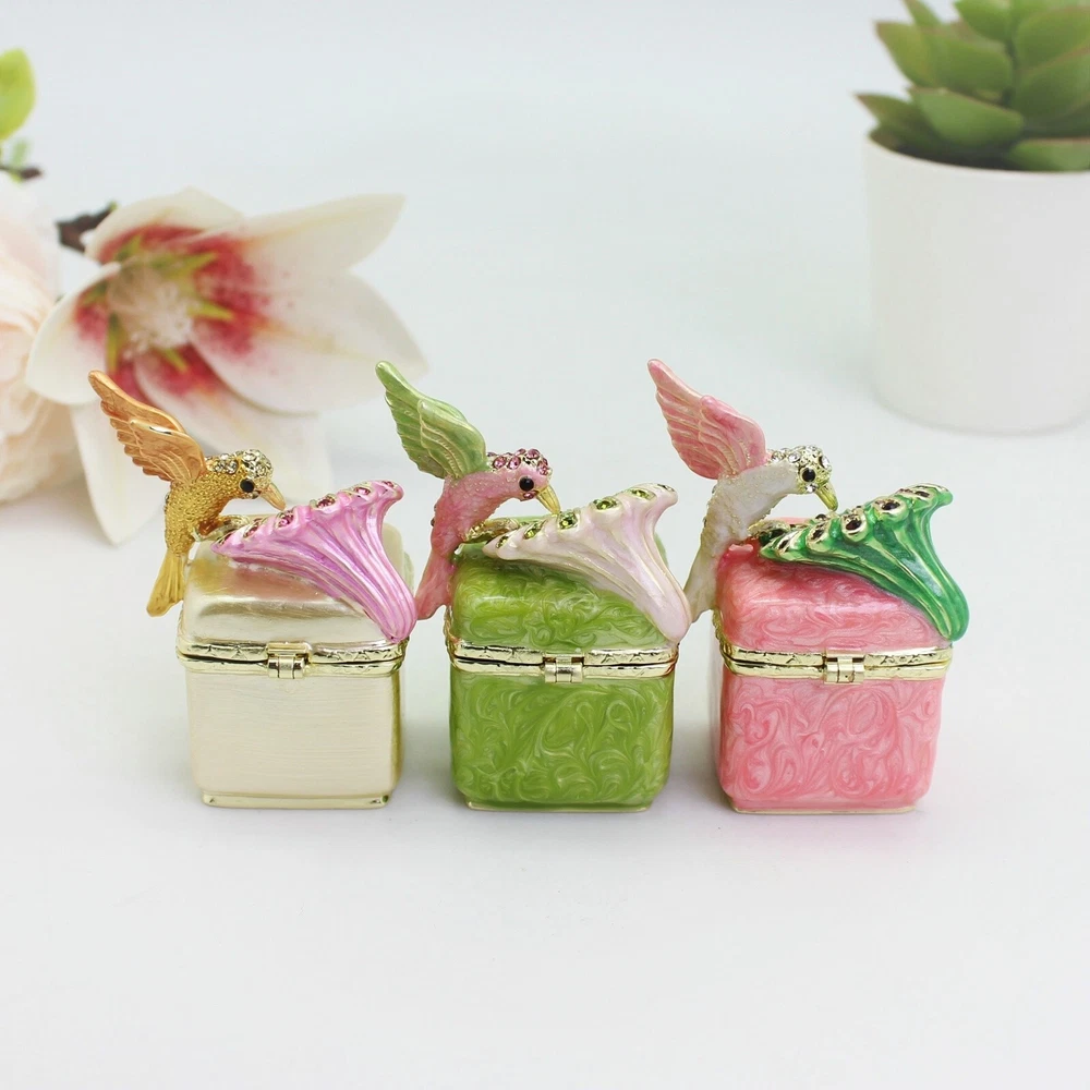 Enamel Hummingbird Flower Trinket Box - Wedding Gift, Romantic Home Decor