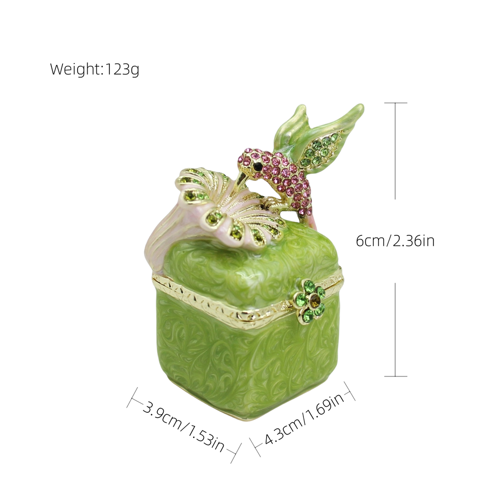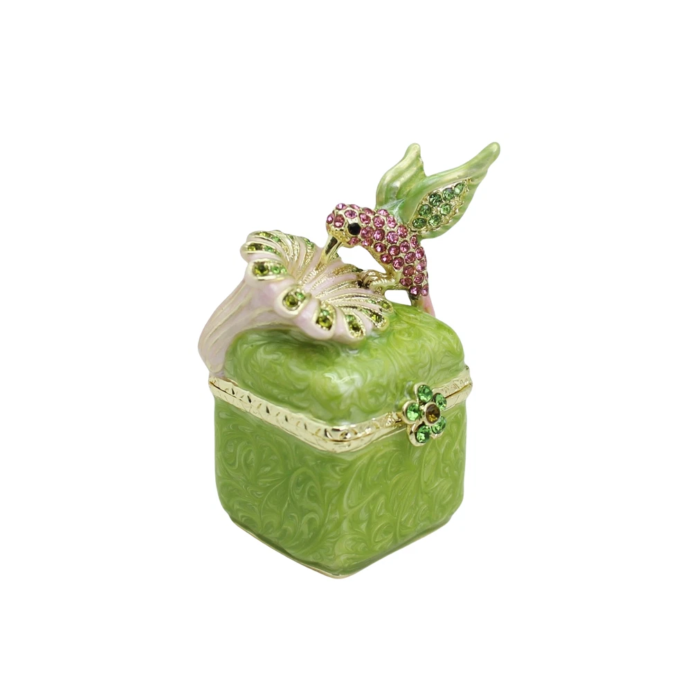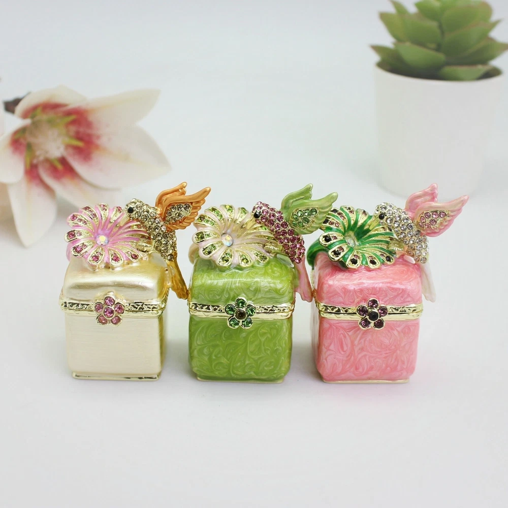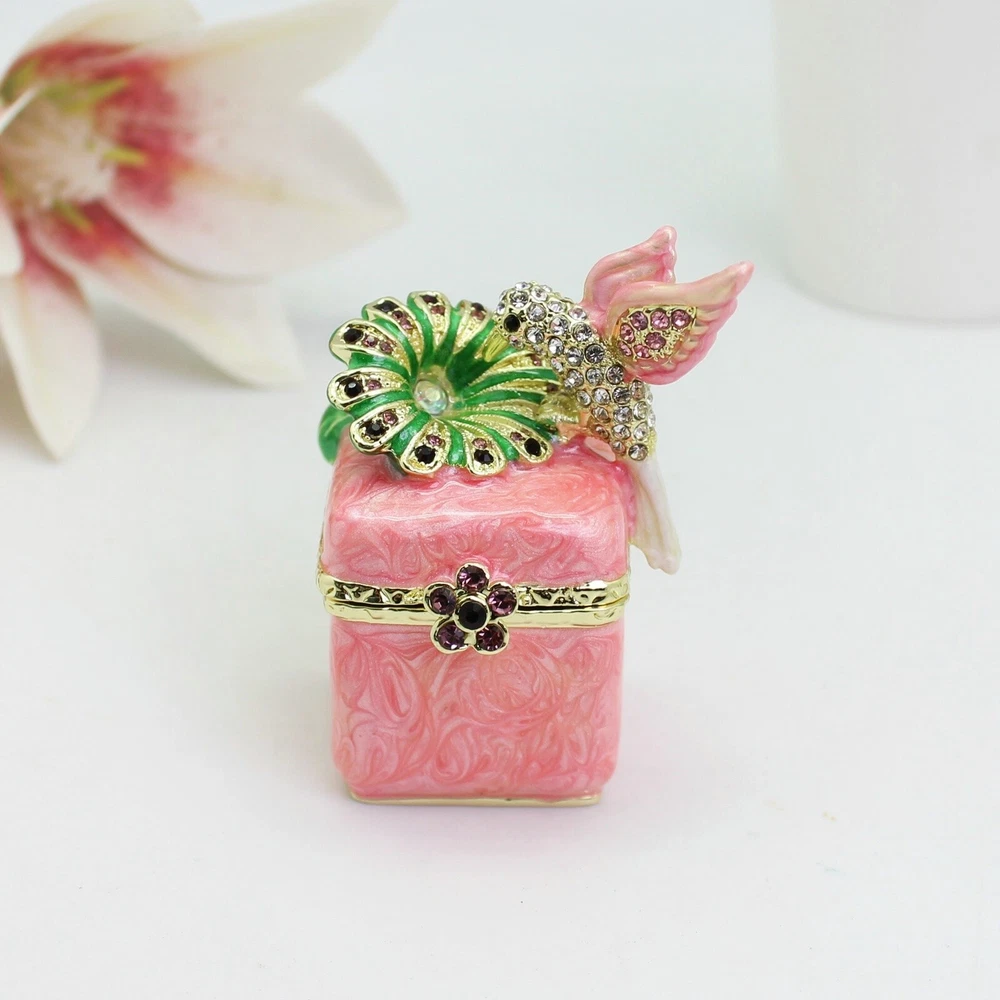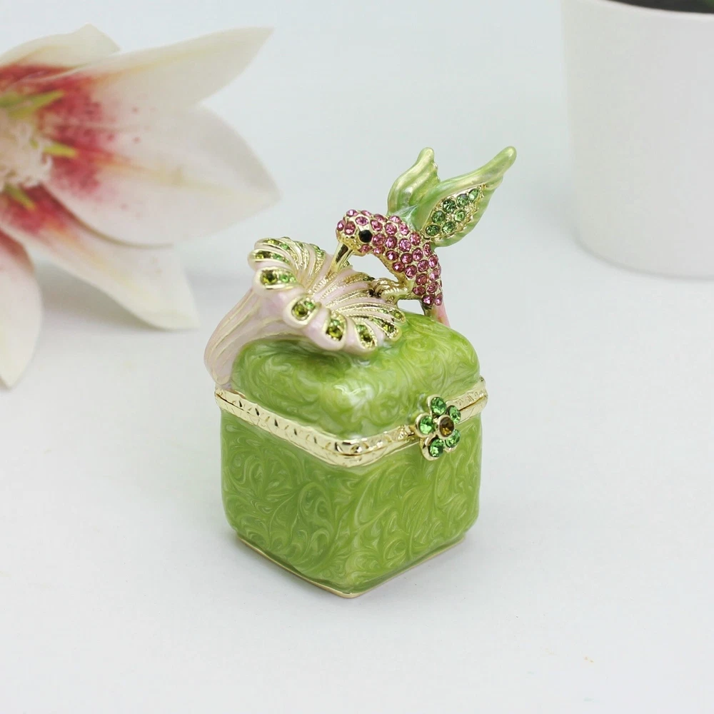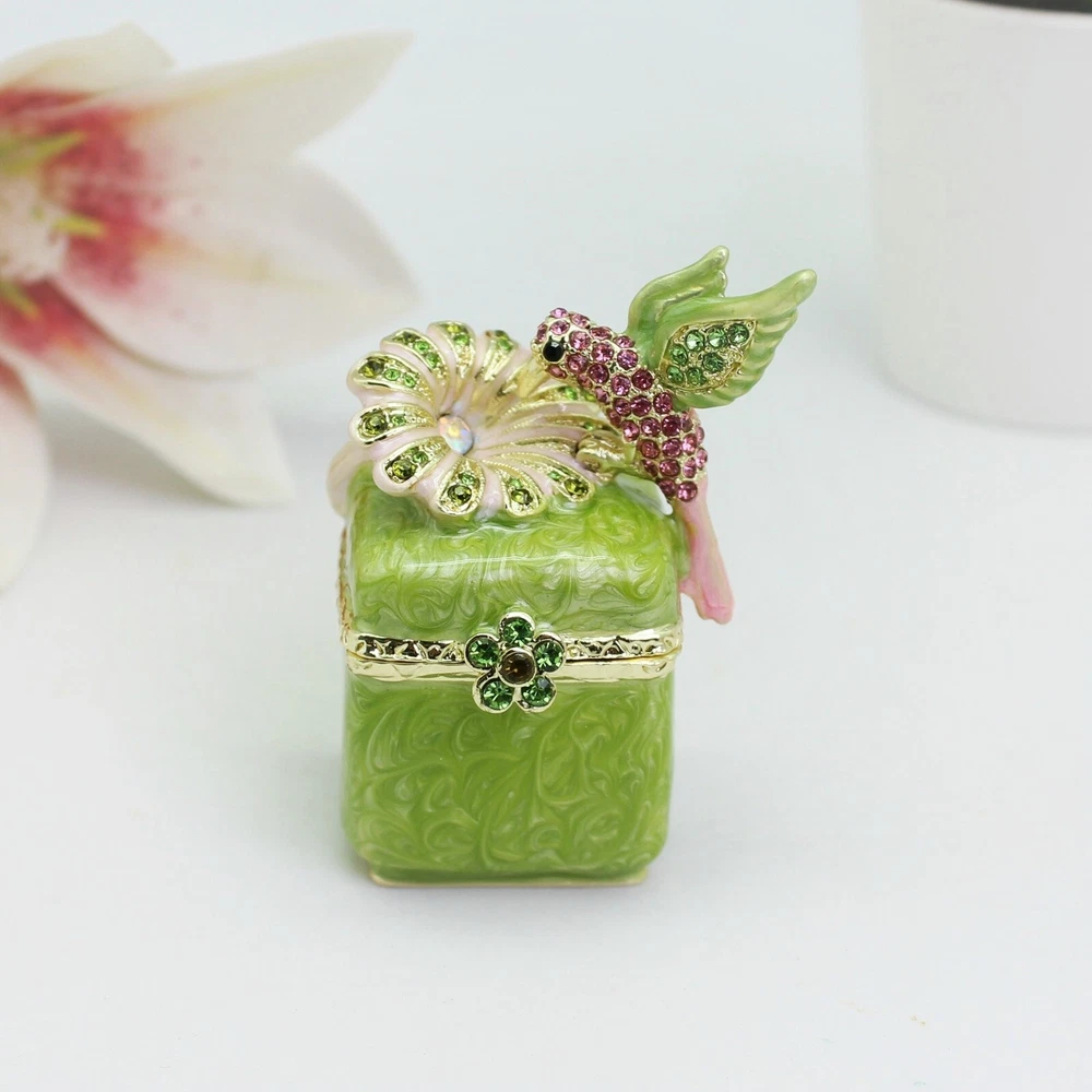 Enamel Hummingbird Flower Trinket Box - Wedding Gift, Romantic Home Decor