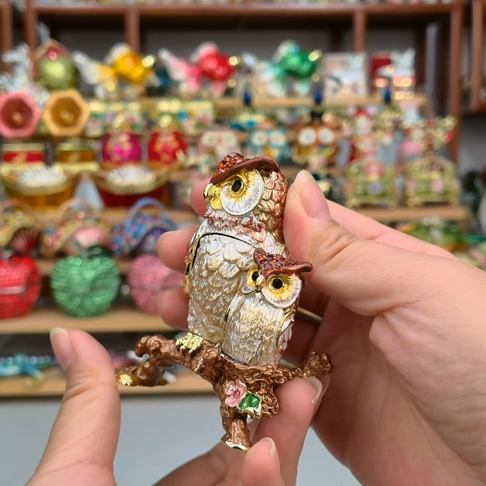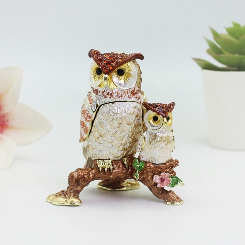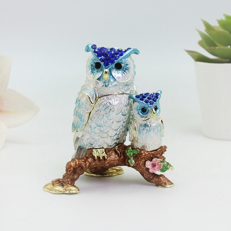 【 Materials】Pewter Enamel Size:6.7x4.5x7.8cm(LWH) Made in GuangDong 【 Package】Gift Box 100% Brand New Handmade Pewter Enamel Trinket Box Handmade by masters with 20+ Years Experience Can be use for Birthday Gifts,Wedding Favor,Christmas Gifts,Home Decorative This collectible trinket box is meticulously crafted from fine pewter I t is hand enameled and then lavishly inlaid with crystals by skilled artisans. Opens on a hinge to reveal the hand painted interior Magnetic closure to keep the box shut securely , T his jewelry trinket box is made of a pewter-like alloy and finished with a high polished finish Versatile Use: Perfect as both a decorative piece and a functional trinket box I deal for storing small precious items while bringing fortune symbolism