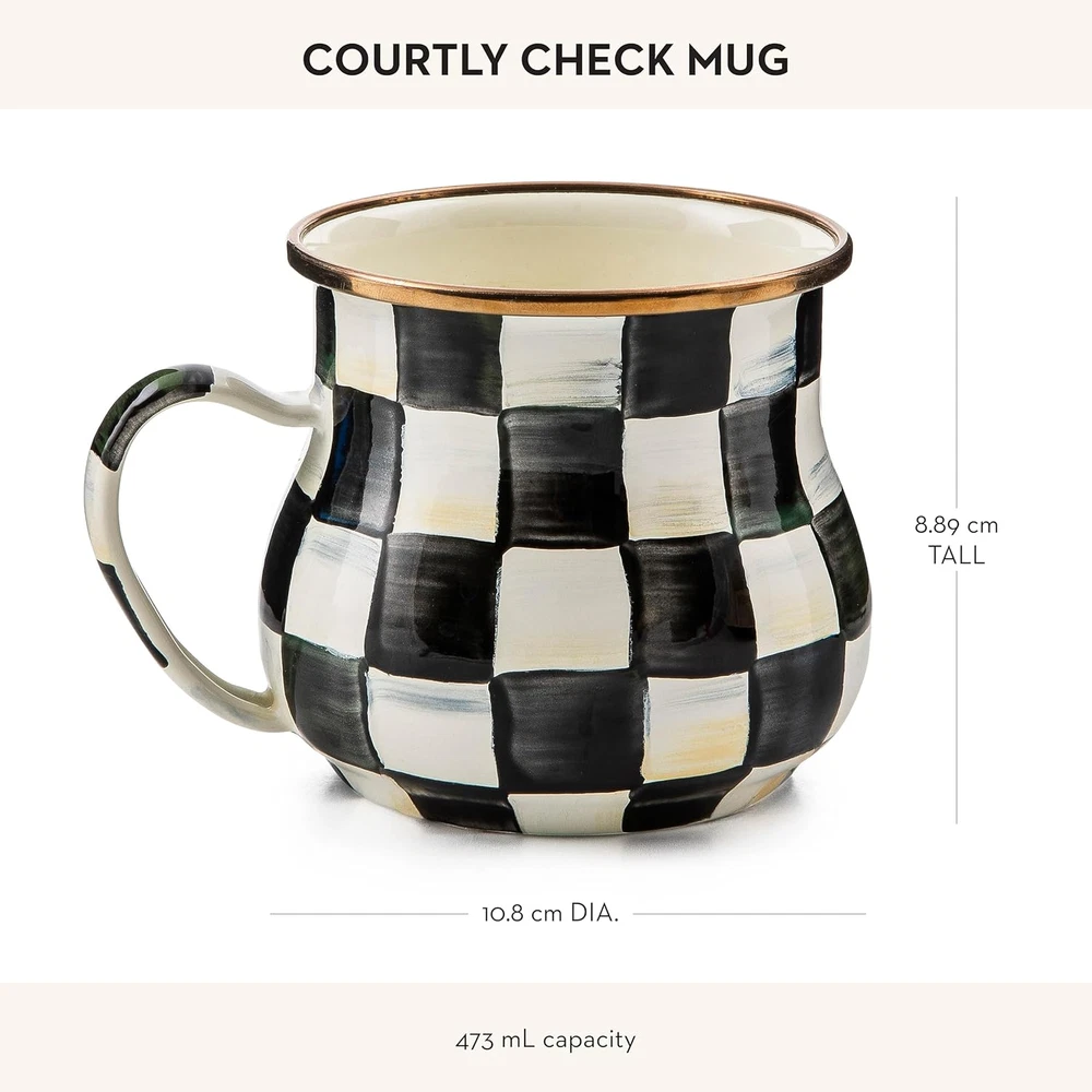 Store New Arrivals Add to Favorite View Feedback Contact Enamel Mug, Cute Enamelware Coffee and Tea Mug, Unique Drinkware, 16 Ounces, Black-And-White Courtly Check, Set of 1 Description Item model number 89204 Style Modern Number of Items 1 Pattern Checkered Embellishment Gold Luster Theme Wedding Unit Count 1 Count Product Dimensions 4.25"W x 3.5"H Package Type FFP Age Range (Description) Adult Material Stainless Steel, Steel Capacity 16 ounces Is Discontinued By Manufacturer No Specific Uses For Product Hot Drinks Reusability Reusable Occasion Christmas, Wedding, Housewarming, Birthday Item Weight 8.78 ounces Item Weight 8.8 ounces Material Feature Ceramic Special Feature Dishwasher Safe Color Courtly Check Finish Type Glossy Shape Round Recommended Uses For Product Home Included Components Handle Product Care Instructions Machine Wash Size 1 Cup UNIQUE COFFEE MUG: The MacKenzie-Childs Enamel Mug is made for year-round rotation in your collection of pretty coffee mugs or for decorating your home coffee station. It’s an ideal drinking mug for coffee, tea, hot chocolate, and other beverages. ELEGANT SERVING ESSENTIAL: Our Courtly Check Mug is the classic coffee mug for any occasion. This enamel cup has a heavy-gauge steel underbody and is decorated with hand-painted color-dragged black-and-white checks and a bronzed stainless-steel rim. HOME-DECOR ACCESSORIES: At MacKenzie-Childs, we make everyday items extraordinary. From the kitchen countertop to the table, you can enjoy the magic of MacKenzie-Childs anywhere. We offer enamel cups, dinnerware, kitchen decor, and more. THE PERFECT GIFT: A MacKenzie-Childs piece is much more than a gift—it’s the beginning of a lifelong collection. Our enamel coffee mug makes an amazing Christmas, wedding, or housewarming gift. Welcome to the MacKenzie-Childs family! MACKENZIE-CHILDS: MacKenzie-Childs was born of our love of home and our commitment to fresh, innovative design. Each piece holds the surprise and joy of the unexpected. Product Description The video showcases the product in use. The video guides you through product setup. The video compares multiple products. The video shows the product being unpacked. ELEVATE THE TABLE From plating to serve ware and beyond, explore a wide range of Courtly Check tabletop styles designed to make every meal unforgettable. Whether creating a truly original dining collection or mixing with favorite pieces, set the table with unique style. ESSENTIAL, EVERYDAY Where personality meets practicality. Infuse your kitchen and beyond with fresh, timeless enamelware and more—crafted to be used, loved, and cherished for years to come. With Courtly Check, everyday moments find new meaning with a stylish twist. Courtly Check Add to Cart Add to Cart Add to Cart Add to Cart Add to Cart Customer Reviews 4.7 out of 5 stars 1,167 4.8 out of 5 stars 157 4.4 out of 5 stars 187 4.7 out of 5 stars 78 4.7 out of 5 stars 71 4.7 out of 5 stars 137 4.7 out of 5 stars 502 Price $189.00 $ 189 . 00 $119.95 $ 119 . 95 — $65.00 $ 65 . 00 — $85.00 $ 85 . 00 $59.95 $ 59 . 95 Courtly Check Collection ✔ ✔ ✔ ✔ ✔ ✔ ✔ Sizes Available 2 3 1 3 1 2 1 Measurements and Capacity 2 qt., 3 qt. 38 oz., 48 oz., and 64 oz. 4 ¼" dia. x 3 ½" tall, 16 oz. 8", 10", and 12" 3 qt. 1 qt., 2 ½ qt. 8 ½" L Glazed-Steel Underbody ✔ ✔ ✔ ✔ ✔ ✔ ✔ Suitable for Food Service ✔ ✔ ✔ ✔ ✔ ✔ ✔ Care Instructions Hand-wash with mild soap Hand-wash with mild soap Hand-wash with mild soap Hand-wash with mild soap Hand-wash with mild soap Hand-wash with mild soap Hand-wash with mild soap Number of Patterns Available 6 6 6 6 6 6 6 ABOUT US We offer the best prices around on high quality products. Our E-store includes media such as books, movies, music and games while offering electronics, toys, sporting apparel, clothing, tools, general home, garden items and more. SHIPPING We are always working hard to ensure your package arrives as soon as possible. Please understand that some factors like weather, high postal traffic, and the performance of shipping companies are outside of our control. We offer free shipping to the lower 48 states and ship within 2 business days of payment, usually sooner. We do not accept P.O. Boxes. Please provide a physical address. For shipping outside of the continental USA, we only use eBay's Global Shipping Program.The item is shipped to KY and then sent to the rest of the world. International customers are responsible for all duties and taxes. Continue to check out in order to calculate costs for shipping the item to your country. Messages regarding eBay's Global Shipping Program MUST be directed at eBay EXCLUSIVELY. RETURNS We offer a 30-Day Return Policy on items which you are not completely satisfied with. You have the option for a full-refund or an exchange of the item. No returns are available on items shipped outside of the USA. PAYMENT We accept PayPal. CONTACT US This page content is yet to come Please ad us to your favorite seller and visit again later Thank You CUSTOMER SATISFACTION We try our very best to make sure every customer is completely satisfied. If there's a problem, message us! We're happy to help. WE ACCEPT Copyright © 2021 AutoDS. | All Rights Reserved