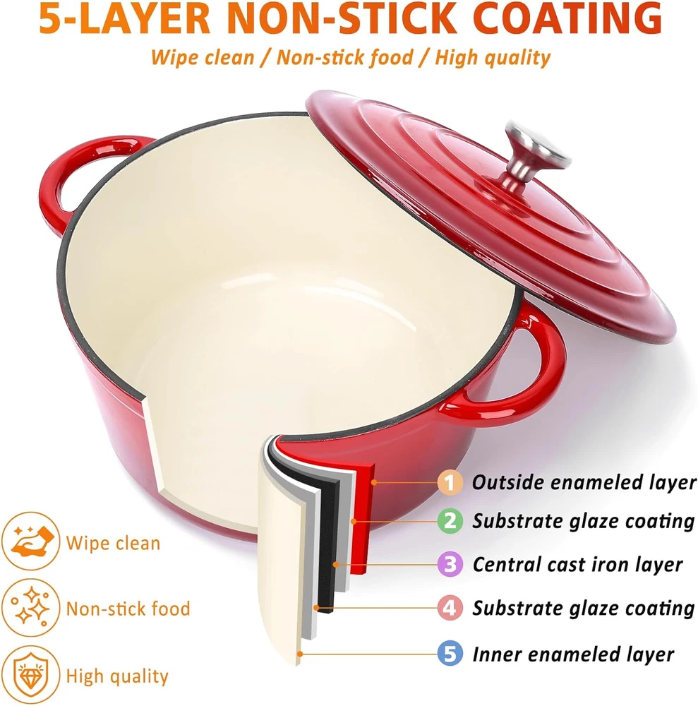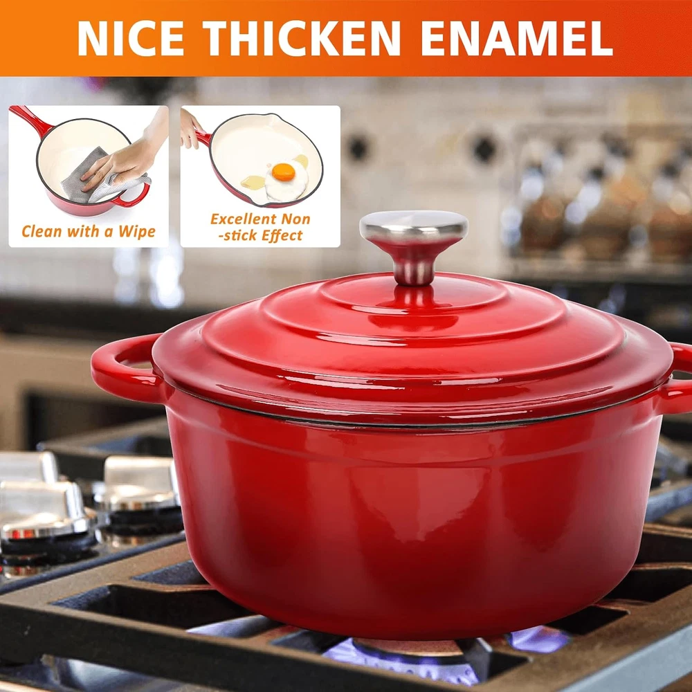 Enameled Cast Iron Cookware Set - 7 Piece Set of Dutch Ovens, Sauce Pan About this item [What's in the Box] - Hisencn's 7-piece enameled cast iron cookware set includes 4.8-quart large dutch pot with lid, 2.8-quart small dutch pot with lid, 2-quart sauce pan, 10.25-inch skillet. Excellent cookware gift choice for sauteing, grilling, slow cooking, braising, braising, boiling, frying, roasting, grilling and baking! [Premium Quality]- The dutch oven pot set material is made of durable cast iron with excellent heat distribution, heats up quickly and evenly, and the food can be cooked evenly and succulently. [Non-Stick Enameled Coated] - The cast iron cookware set is made of 5 layers of coating, 1 cast iron interior, 2 layers of base glaze, and 2 layers of exterior enamel. The enamel coating of this beautiful red cookware set is durable and resistant to cracking and scratching. Non-stick coating make cleanup very easy and most messes can be wiped away in a single swipe. The coating does not contain PFOA, PTFE, lead or cadmium, a great partner for healthy cooking. [Versatile Cooking] - Cookware set compatible with gas cooktops, electric, induction and ceramic. Can be used in ovens up to 550 degrees Fahrenheit for roasting meat and bread. [Cleaning and Maintenance] - The high quality coating makes cleaning twice as easy as it should be, easy to clean with a soft sponge or rag. If you want to remove tough stains, soak it in warm water for 1 to 2 hours or more, then wash it with baking soda or neutral detergent. Avoid metal utensils that may scratch the enamel to maintain the luster of the ceramic coating. [Enclosed Thermal Self-circulating] - The lids of cast iron dutch ovens and sauce pan come with a raised design that allows water vapor to circulate through the pan, locking in the nutrients and moisture of the food and falling evenly on the food, preserving the original nutrients of the food, and providing excellent heat retention properties. The lid fits the pot closely, and the nutrients and water will not overflow. [Classic Design] - Cast iron cookware set with sturdy perforated handles that make it easy to move pot from the stovetop to the oven, hang it easily for storage, or bring a eye-catching dish to the table! The stainless steel knobs on the lid are durable and resistant to rust. The pan comes with pouring ports on both sides, making it easy for you to pour out delicious dishes. [Top Quality from Hisencn]- The non-stick enameled cast iron cookware set has passed a strict inspection process. If the item you receive is defective due to delivery, please contact our 24/7 online customer service immediately, we will reply you within 24 hours to solve your query. Warranty extended to 1 year for quality issues. Product Description Store Categories Store Categories Weber Weber Q Series Genesis 300( Side Controls ) Spirit 200 ( Front Controls ) Weber Charcoal Grill Genesis 300( Front Controls ) Weber Spirit 300 II Series Genesis II and LX 400 Series Spirit 300( Front Controls ) Spirit 200 ( Side Controls ) Spirit 300( Side Controls ) Weber Spirit 200 II Series Genesis II and LX 300 Series Grill Catch Pan Holder Nexgrill Charbroil Cooking Grates Grill Tool Performance Series Advantage Series Repair Parts Commercial Series Performance TRU-Infrared Grill Cover Fire Pit Decoration Fire Pit Decoration Fire Glass Beads Drop-in fire pit pan Gas Log , Fire Pit Blackstone Chargriller Coleman Dyna-Glo Grill Connectors & Hoses Big Green Egg Gill Tools Brinkmann Camp Chef Grill Master Kenmore Master Forge Other Handling time Return policy Payment details Handling time Will usually ship within 1 business day of receiving cleared payment. Return policy After receiving the item, contact seller within Payment details Store Categories Store Categories Weber Weber Q Series Genesis 300( Side Controls ) Spirit 200 ( Front Controls ) Weber Charcoal Grill Genesis 300( Front Controls ) Weber Spirit 300 II Series Genesis II and LX 400 Series Spirit 300( Front Controls ) Spirit 200 ( Side Controls ) Spirit 300( Side Controls ) Weber Spirit 200 II Series Genesis II and LX 300 Series Grill Catch Pan Holder Nexgrill Charbroil Cooking Grates Grill Tool Performance Series Advantage Series Repair Parts Commercial Series Performance TRU-Infrared Grill Cover Fire Pit Decoration Fire Pit Decoration Fire Glass Beads Drop-in fire pit pan Gas Log , Fire Pit Blackstone Chargriller Coleman Dyna-Glo Grill Connectors & Hoses Big Green Egg Gill Tools Brinkmann Camp Chef Grill Master Kenmore Master Forge Other Enameled Cast Iron Cookware Set - 7 Piece Set of Dutch Ovens, Sauce Pan About this item [What's in the Box] - Hisencn's 7-piece enameled cast iron cookware set includes 4.8-quart large dutch pot with lid, 2.8-quart small dutch pot with lid, 2-quart sauce pan, 10.25-inch skillet. Excellent cookware gift choice for sauteing, grilling, slow cooking, braising, braising, boiling, frying, roasting, grilling and baking! [Premium Quality]- The dutch oven pot set material is made of durable cast iron with excellent heat distribution, heats up quickly and evenly, and the food can be cooked evenly and succulently. [Non-Stick Enameled Coated] - The cast iron cookware set is made of 5 layers of coating, 1 cast iron interior, 2 layers of base glaze, and 2 layers of exterior enamel. The enamel coating of this beautiful red cookware set is durable and resistant to cracking and scratching. Non-stick coating make cleanup very easy and most messes can be wiped away in a single swipe. The coating does not contain PFOA, PTFE, lead or cadmium, a great partner for healthy cooking. [Versatile Cooking] - Cookware set compatible with gas cooktops, electric, induction and ceramic. Can be used in ovens up to 550 degrees Fahrenheit for roasting meat and bread. [Cleaning and Maintenance] - The high quality coating makes cleaning twice as easy as it should be, easy to clean with a soft sponge or rag. If you want to remove tough stains, soak it in warm water f