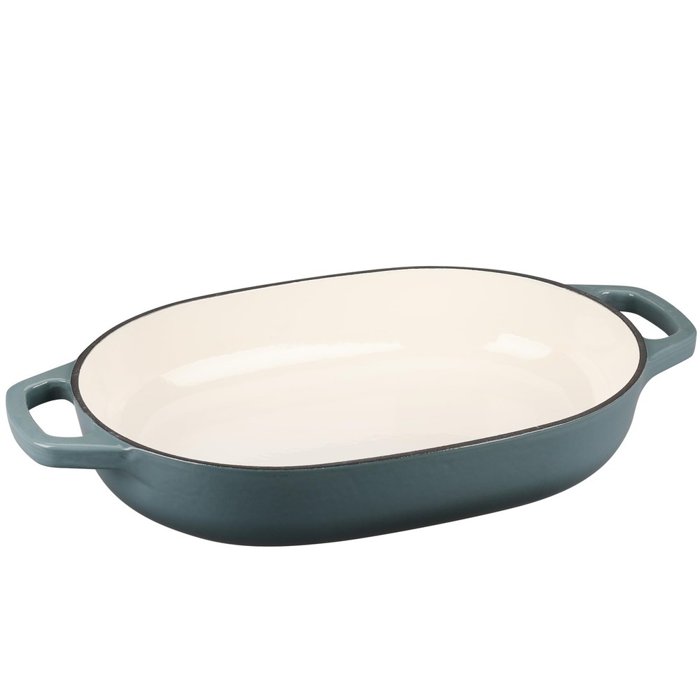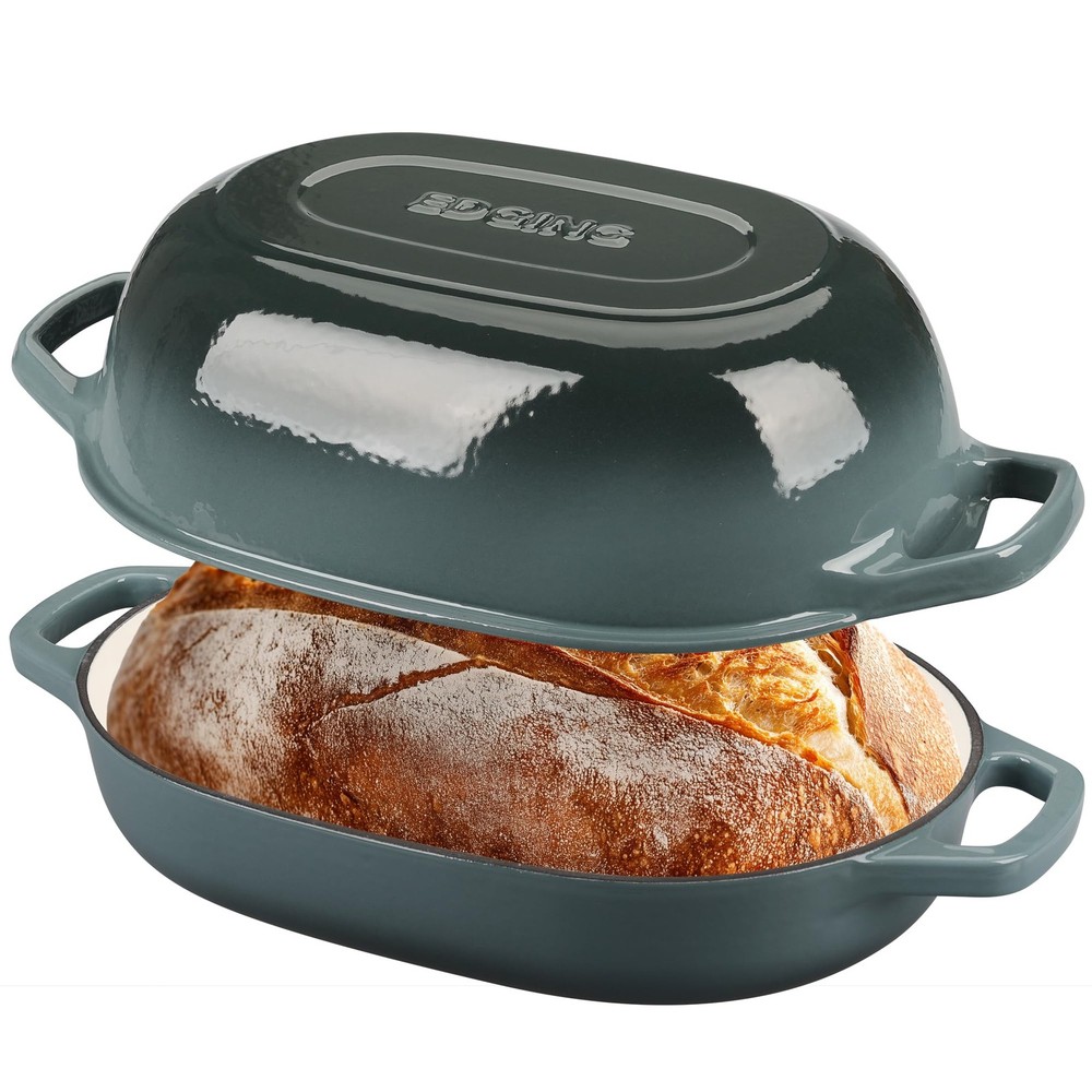 Crafted for both functionality and elegance. Crafted from cast iron, coated with a smooth, glossy enamel finish, ensures even heat distribution and long-lasting durability. Its oval shape accommodates artisan-style loaves, promoting crust formation and soft, airy interiors. Durable Enamel Coating: Features a smooth, high-quality enamel finish that resists staining, rust, and odors, ensuring long-lasting use. Oval Shape Design: The elongated oval form provides ample space for baking artisan-style loaves, ensuring even heat distribution. Excellent Heat Retention: The heavy duty cast iron core with a thick enamel coating ensures superior heat distribution and long-lasting warmth, keeping bread fresh and crusty for longer. Easy to Clean: White enamel surface prevents sticking and allows for effortless cleaning with minimal scrubbing. Oven-Safe and Versatile: Suitable for use in ovens up to high temperatures, ideal for baking bread, casseroles, or roasting meats.