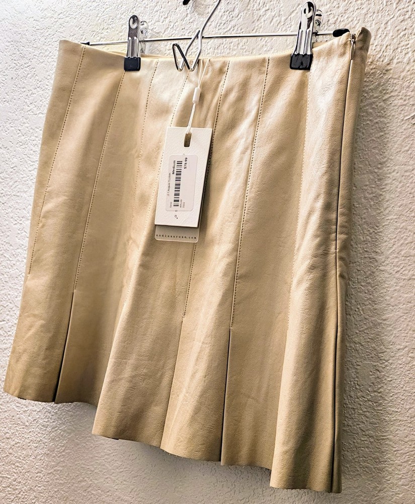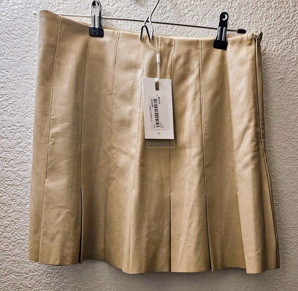 Upgrade your wardrobe with this chic Endless Rose pleated leather skirt. Perfect for any occasion, this solid beige mini skirt features a mid-rise and a zipper closure. The skirt is made of high-quality leather and is accented with pleats, adding a touch of elegance to your outfit. This skirt is perfect for women who want to make a statement with their fashion. The skirt is available in size M and is suitable for regular size types. It is important to note that this skirt requires dry cleaning only. Add this skirt to your collection and elevate your style today.
