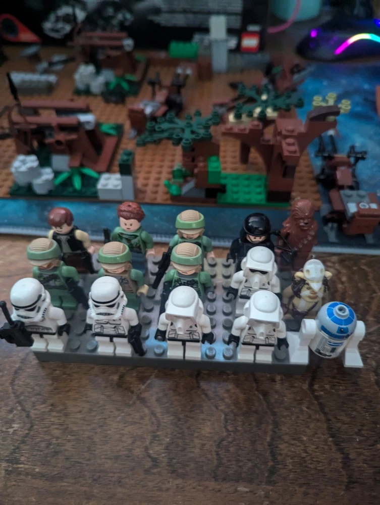 This is an add of the endor set 8083 plus a ton of extra minifigures. The set should be complete but can't guarantee that so as is. Two catapults from official Lego starwars endor sets plus the walker that comes with the endor 8083 set. Also comes with an added on roof for the endor base.