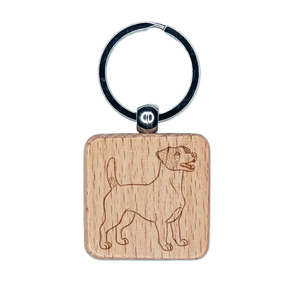 Energetic Jack Russell Terrier Pet Dog Engraved Wood Square Keychain Tag Charm