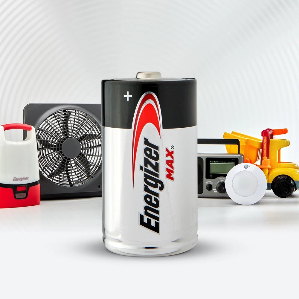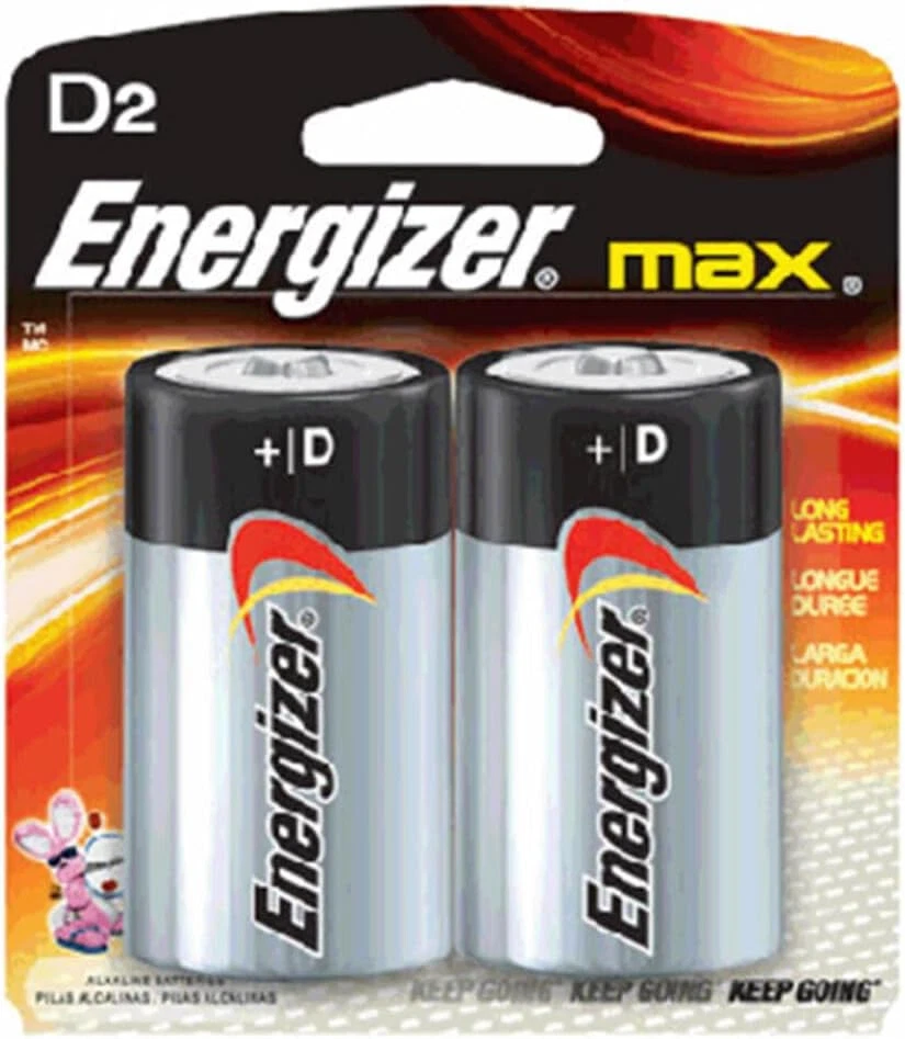 Product Description Energizer MAX D Batteries D Cell Alkaline Lithium General Purpose Batteries 2 Count (Pack Of 6) Energizer MAX D Alkaline Batteries. Energizer provides long lasting power for your everyday devices, whether you need replacement D cell batteries for high-tech flashlights, radios or children's toys. Made to last, not to leak, these Energizer D batteries have a shelf life of up to 10 years, so they're ready to keep your devices operating when you need them most. Each battery pack contains D batteries to keep your supply of backup batteries well stocked. Depend on Energizer MAX D batteries to fuel your everyday electronics, whether you're at home, work or play. Long-lasting power and innovation is what the Energizer MAX family is all about – up to 10-year shelf life for D batteries. Plus, Power Seal Technology is the Energizer innovation that delivers energy you can rely on. Energizer MAX Alkaline Batteries, D, 2 Batteries/Pack Dependable, long-lasting performance in a wide range of devices. Makers of the world's first zero mercury AA alkaline (commercially available since 1991); battery can be disposed with regular household trash. 10-year shelf life. Battery Type: Alkaline; Battery Size: D; Voltage: 1.5 V; Material(s): Alkaline Manganese Dioxide. Long-life alkaline From the Manufacturer Made in U.S.A. 2 pack of Energizer MAX D Batteries, Batteries D Size These alkaline D batteries provide long lasting power for your everyday devices The power you depend on for high-tech D battery flashlights, radios, toys and other high-drain devices MAX D alkaline batteries that hold power for up to 10 years in storage Energizer MAX D batteries are made to last. Not to leak Feel confident knowing you have the long-lasting power and protection you expect from Energizer MAX D battery pack that holds power for up to 10 years in storage D Alkaline batteries that are made to last. Not to leak. Also available in AAA batteries, AA batteries, C batteries and 9V batteries Alkaline batteries provide a long-lasting power source Use in calculators, Pencil sharpeners, cameras, flashlights and more Package Dimension : 3.4 centimeters L x 9.3 centimeters W x 13.0 centimeters H Country of Origin: UNITED STATES