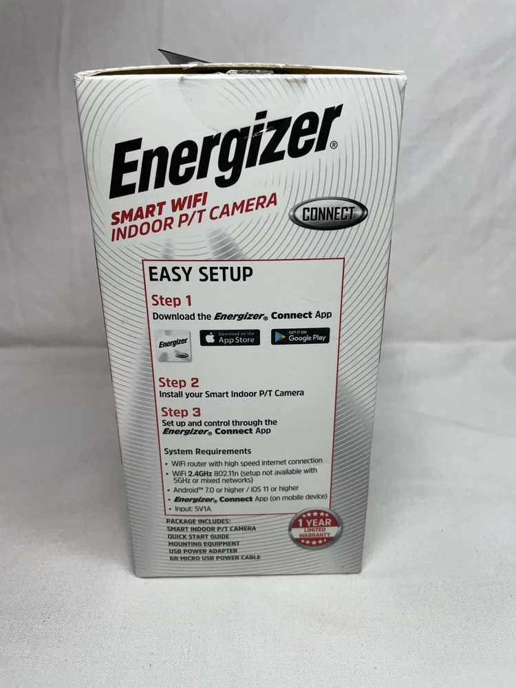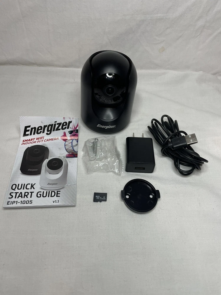 Maximum Resolution: 1080p (FHD) Features: Motion/PIR Activated, Night Vision, Plug in, Wi-Fi, Pan & Tilt, Two-Way Audio, Live Video Viewing Smart Home Protocol: Wi-Fi gtin13: 0805106872472 Country/Region of Manufacture: China Smart Home Compatibility: Google Assistant, Amazon Alexa Size: 1 Count (Pack of 1) Brand: Energizer Number of Cameras Included: 1 UPC: 0805106872472 Connectivity: Wireless Model: Energizer Smart Wifi Camera MPN: EIP1-1005 Power Source: USB, Wall Plug-In Color: Black Year Manufactured: 2021 Type: Indoor Smart Camera Location: Indoor Only