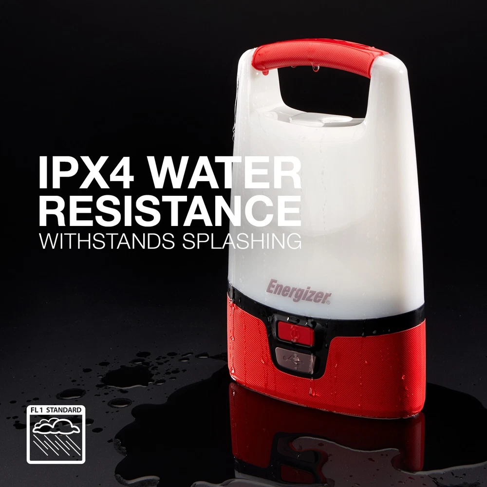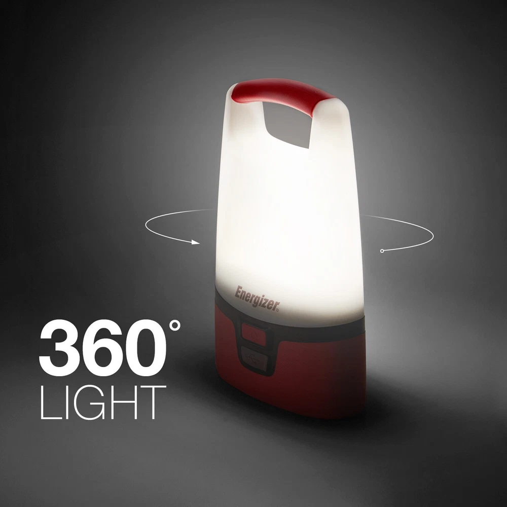 Lumens: 1,200 lm Light Output: 1,200 lm Light Source: LED Run Time: 8 h Color(s): Red/White Bulb Type: LED Voltage: 1.5 V Power Source(s): 4 D (Sold Separately) Flashlights Type: Lantern Battery Type: Akaline Global Product Type: Lanterns, LEDRugged and versatile Energizer Vision LED USB Lantern Durable construction resists damage from drops up to 1 meter high to deliver worry-free reliability as an emergency light, camping lantern, and more Lantern delivers up to 1200 lumens* of 360º lighting that’s 10X brighter than standard LED technology USB port for charging devices makes it a perfect accessory for power outages Customize this electric lantern’s light settings with its dimming feature, from high mode to low, diffused night light mode Operates on 4 Energizer Max D batteries, not included