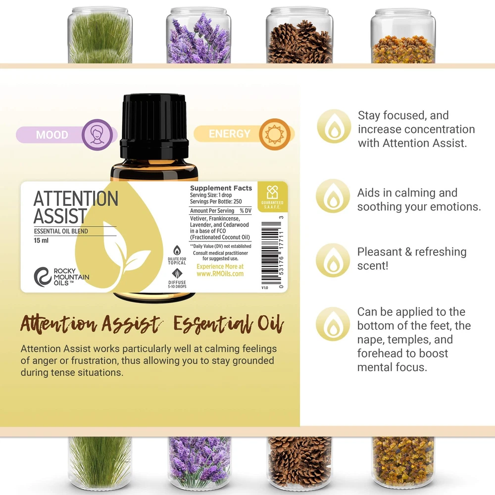 Stay focused, and increase concentration with Attention Assist. From doing homework to completing a work project by its deadline, we have things in our daily lives when we need to pay extra close attention; however, we can sometimes find ourselves distracted from the task at hand. Attention Assist is expertly crafted to help clear cobwebs, ground, and keep your thoughts clear so that you can start checking items off of your To-Do list. Attention Assist also aids in calming and soothing when you’re feeling overwhelmed. It works particularly well when dealing with tense situations, thus allowing you to stay grounded. Attention Assist is a blend of Vetiver Essential Oil, Frankincense Essential Oil, Lavender Essential Oil, and Cedarwood essential oil in a base of Fractionated Coconut Oil. It has a bold, woodsy, and earthy aroma that awakens and grounds the mind. Your trust and confidence is very important to us. As part of our S.A.A.F.E. Promise to you, we provide GC/MS (Gas Chromatography / Mass Spectrometry) test results from a verified third party, independent lab for each one of our essential oil products. GC/MS tests verify purity and quality of the oils we sell, so you can be sure you’re using the highest quality oils available on the market today. Energy and focus essential oil blend: Attention Assist is a blend of Vetiver, Frankincense, Lavender, and Cedarwood essential oils in a base of Fractionated Coconut Oil; It has a bold, woodsy, and earthy aroma that awakens and grounds the mind Diffuse: Expertly crafted to help clear cobwebs, keep your mind grounded, and keep your thoughts clear so that you can start checking items off of your To-Do list; It works particularly well when dealing with tense situations, thus allowing you to stay grounded Topical: For a quick energy boost, dilute and apply topically to the bottom of the feet, the back of the neck, temples, or forehead to boost focus; Re-apply several times a day as needed Testing like no other: Sourced from sustainable farms around the globe, our oils are rigorously and independently tested 3 times before it reaches your hands; We are committed to bringing you only the best, so you can rest assured that all of our products are 100% pure and effective Our promise: Through our S.A.A.F.E. Promise, we have created an exceptionally high standard of quality built on a culture of caring that’s unrivaled in the essential oils industry today