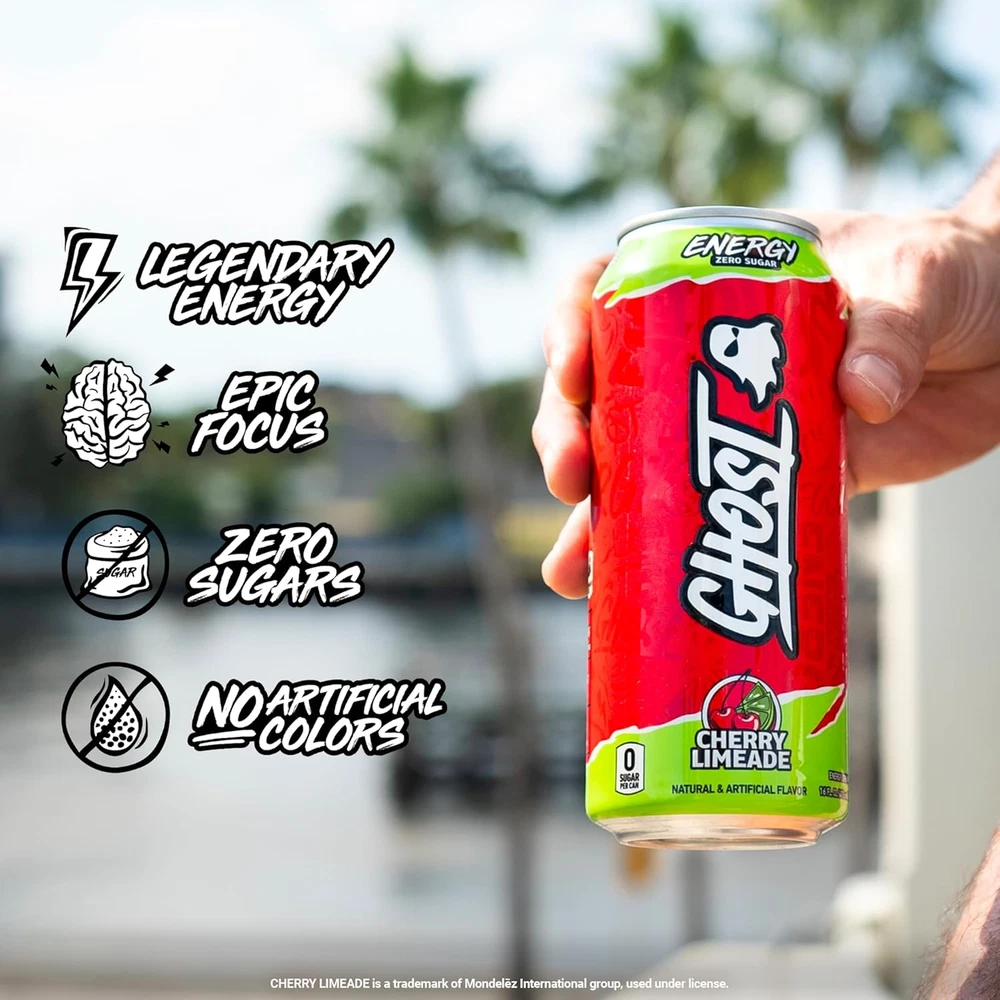Feel-Good Energy: GHOST Energy is the fully transparent, fully loaded energy drink we’ve all been waiting for. No artificial colors. No BS. Authentic Cherry Limeade flavor. 12-pack. Only intended for persons 18 years or older. Legendary Energy: This drink contains 200mg of Natural Caffeine from coffee beans, which has been found anecdotally to deliver a smooth, feel-good energy with less jitters and no crash when compared to other forms of caffeine. Epic Focus: GHOST Energy combines the nootropics of Carnipure L-Carnitine, Alpha-GPC, Neurofactor, and AstraGin to help your body convert fatty acids into energy, support brain and cognitive function, and absorb a wide range of nutrients.* Total Transparency: All GHOST products feature a transparent label that fully discloses the dose of each active ingredient. Zero proprietary blends means you know what you’re getting in each and every sip. GHOST Energy is vegan-friendly and gluten-free. Perfect Energy and Focus Combo: GHOST Energy is a full disclosure energy drink that delivers on efficacy and the info to ensure you know exactly what you're getting in every can. Combining 200mg of natural caffeine with nootropics to deliver the perfect combo of energy and focus. Product Description