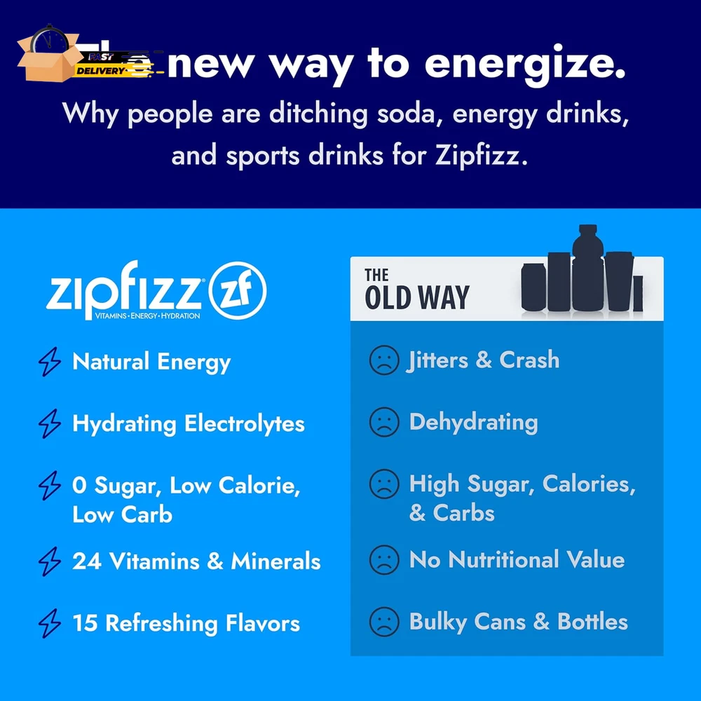 Store New Arrivals Add to Favorite View Feedback Contact Energy Drink Mix, Electrolyte Hydration Powder with B12 and Multi Vitam Description Is Discontinued By Manufacturer No Product Dimensions 5 x 5 x 5 inches; 0.8 ounces Country of Origin USA Caffeine Content 100 Item Weight 22.68 g Flavor Name Black Cherry Package Information Tube Item Form Powder Size 0.39 Ounce (Pack of 20) 3-in-1 Daily Functional Beverage – Zipfizz Energy Drink Powder combines natural ingredients to deliver sustained energy, liquid electrolytes, and immunity support in one sugar-free, low-carb, and low-calorie daily bubbly beverage. Sweet Black Cherry Flavor – Savor the rich and juicy taste of juicy black cherries that will awaken your taste buds and boost your energy. Simply add Zipfizz powder to 16-20 ounces of water or other non-carbonated beverage, shake, and enjoy! Packed with Vitamins and Natural Electrolytes – Our comprehensive formula contains 100% of recommended daily vitamins in two tubes, including 500mg of Vitamin C, 950mg of Potassium, 2500mcg of B12, and 105mg of Magnesium. Zero sugar, no artificial flavors or colors, no preservatives, and gluten free. Convenient and Portable for On-The-Go – From replacing your morning coffee to providing essential post-workout hydration and nutrients, Zipfizz’s single-serving hydration sticks are great for traveling and busy schedules. 100% Happiness Guarantee – We pride ourselves on using healthy, natural ingredients to deliver high-quality taste, nutrition, energy, and hydration. Whether you're an athlete pushing the boundaries of physical performance, a professional striving for success, or a student pursuing academic excellence, Zipfizz is your trusted companion on the journey to greatness. Zipfizz is a sugar-free energy powder packet with natural ingredients and great flavor, making it a healthy alternative to sugary sports drinks, coffee, soda, and more. Each packet provides 4-6 hours of sustained energy with 100mg of natural caffeine and is packed with essential daily nutrients like B12, B6, Vitamin C, Calcium, Folate, Niacin, and Antioxidants. To Use: Fill 16-20 fl oz of cold water into a bottle, pour in one tube of Zipfizz Energy Powder, shake & enjoy! Drink 15-30 minutes prior to exercise for increased performance. ABOUT US We offer the best prices around on high quality products. Our E-store includes media such as books, movies, music and games while offering electronics, toys, sporting apparel, clothing, tools, general home, garden items and more. SHIPPING We are always working hard to ensure your package arrives as soon as possible. Please understand that some factors like weather, high postal traffic, and the performance of shipping companies are outside of our control. We offer free shipping to the lower 48 states and ship within 2 business days of payment, usually sooner. We do not accept P.O. Boxes. Please provide a physical address. For shipping outside of the continental USA, we only use eBay's Global Shipping Program.The item is shipped to KY and then sent to the rest of the world. International customers are responsible for all duties and taxes. Continue to check out in order to calculate costs for shipping the item to your country. Messages regarding eBay's Global Shipping Program MUST be directed at eBay EXCLUSIVELY. RETURNS We offer a 30-Day Return Policy on items which you are not completely satisfied with. You have the option for a full-refund or an exchange of the item. No returns are available on items shipped outside of the USA. PAYMENT We accept PayPal. CONTACT US This page content is yet to come Please ad us to your favorite seller and visit again later Thank You CUSTOMER SATISFACTION We try our very best to make sure every customer is completely satisfied. If there's a problem, message us! We're happy to help. WE ACCEPT Copyright © 2021 AutoDS. | All Rights Reserved