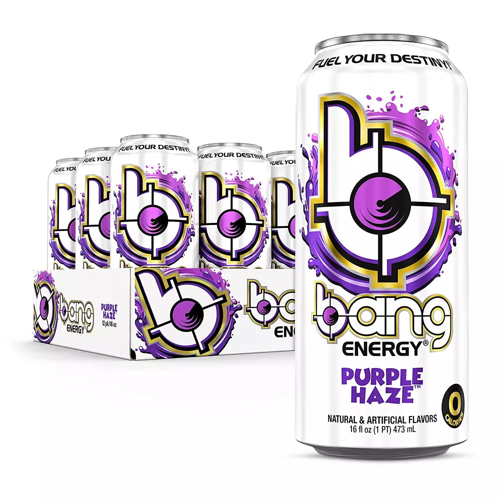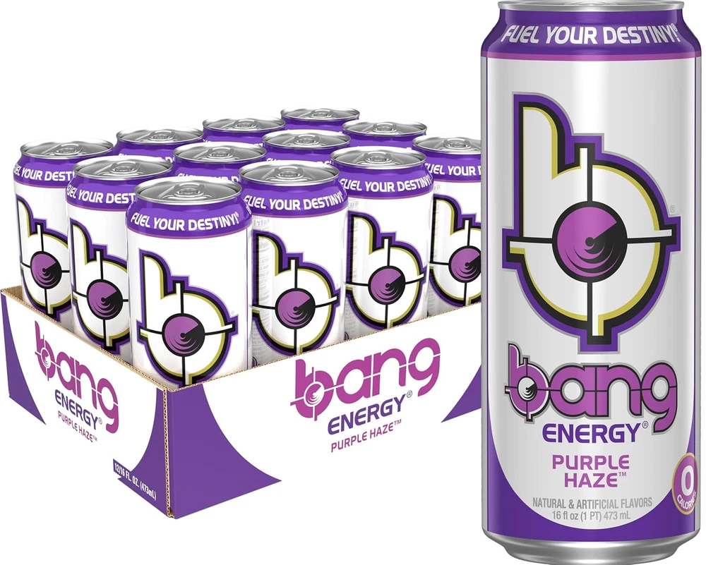 300 MG OF CAFFEINE: Bang Energy drinks contain enough caffeine to power you through any activity of the day. Stay energized for longer without the dreaded crash. ZERO-SUGAR ENERGY DRINK: NO sugar necessary! Just great-tasting, sustained energy. ULTRA CoQ10 and EAAs (Essential Amino Acids) GLUTEN-FREE AND VEGAN-FRIENDLY: Bang Energy drinks are gluten-free and vegan-friendly, so they are perfect for any lifestyle or diet. ZERO CARBS, ZERO ARTIFICIAL COLORS and ZERO CALORIES. Only the reformulated Bang Energy drinks have been tested and verified to be gluten-free and vegan-friendly. If you receive cans that have “BCAA Aminos” instead of “EAA Aminos” printed on them, we cannot guarantee that they fall within the gluten-free and vegan-friendly guidelines. Bang is not your typical sugar-filled soda masquerading as an energy drink. Every 16-ounce can of Bang contains 300 milligrams of caffeine, which studies have shown may increase endurance, as well as strength in some cases, along with essential amino acids (EAA Aminos), CoQ10.< What’s more, Bang is sugar-free and has ZERO calories — yet it tastes great, with 21 different flavors to choose from and counting!