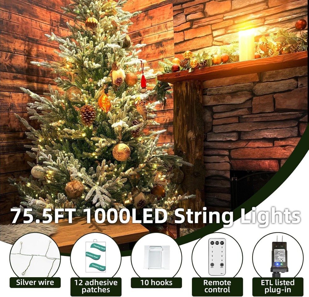 Energy-Efficient 1000 LED Fairy String Lights - Remote & Timer for All Occasions ‹ › ‹ › ‹ › ‹ › ‹ › ‹ › ‹ › ‹ › ‹ › ‹ › ‹ › Energy-Efficient 1000 LED Fairy String Lights Remote & Timer for All Occasions Safety Certified ⚠️⚠️ Enjoy peace of mind with our ETL Certified fairy lights, ensuring safe and efficient illumination. Our fairy lights feature an American standard plug designed to protect your environment by maintaining precise electrical inputs and outputs, enhancing both ambiance and safety. Cascading Warm Light 🌟🌟 Experience the enchanting glow of our 75.5ft fairy string lights , comprising 1000 LED bulbs along 65.6ft of illuminating wire and a 9.8ft lead. These lights emit a soft 2700K warm white glow, creating a magical atmosphere that effortlessly transforms any indoor or outdoor space. Weather-Resistant Durability 🌟🌟 Crafted with an IP44 waterproof rating , our fairy lights are designed to endure a variety of weather conditions. Perfect for installation in gardens, patios, or indoors, these waterproof fairy lights provide a consistent radiant glow year-round. Energy-Efficient Customization 🌟🌟 Our energy-efficient plug-in fairy lights offer eight adjustable modes to cater to any occasion. Whether you're decorating for a birthday, wedding, or holiday celebration, these twinkle lights will help you create the perfect atmosphere effortlessly. Convenient Remote Control 🌟🌟 With the included remote control, you can easily adjust the brightness from 25% to 100%! Customize your lighting for any event with just a touch, ensuring your fairy lights compliment your space beautifully. Automatic Timer & Accessories 🌟🌟 Simplify your routine with the timer function, allowing the fairy lights to automatically turn on for 6 hours and off for 18 hours. The package includes 10 hooks and 12 adhesive pads for easy installation, bringing both magic and practicality to your lighting needs. Perfect for Every Occasion Create a warm and inviting atmosphere with our versatile fairy lights, perfect for décor in bedrooms, parties, or outdoor events. Wrap around the roller design ensures no tangling, allowing for easy setup and maintenance. Specifications: Color: Warm white LED Quantity: 1000 Light Length: 75.5ft (includes 9.8ft lead wire) Waterproof Level: IP44 Input Voltage: 120V Output Voltage: 30V Illuminate Your Moments Use our energy-efficient fairy lights to enhance your home decoration, celebrate holidays, or light up special occasions. Make memories brighter and warmer with these twinkling beauties! Shipping Free & Fast Shipping - We offer free shipping to most of the USA with a normal delivery time of 3-7 days. However, due to the current situation, additional delivery time (up to 3 weeks) may be required for some items. Alternative Carriers - We may use alternative carriers (e.g. USPS, FedEx, UPS, etc.) to ensure your package arrives safely and on time. Due to the use of multiple carriers, we are unable to provide a tracking number automatically. Handling Time - Orders are processed and shipped within 1-2 business days of receiving cleared payment. Shipping Restrictions - Shipping to Alaska, Hawaii, Puerto Rico, Guam, and other US territories may incur shipping charges or delivery restrictions. Please contact us before ordering, or your order can be refunded/cancelled. State Restrictions - There may be restrictions based on your state of purchase. For example, certain items may not be shipped to California due to state regulations. Contact for Tracking Updates - If you require tracking updates or have any concerns about the delivery of your order, please feel free to contact us, and we will be happy to assist you. Return 30-Day Hassle-Free Returns - We want you to be completely satisfied with your purchase. If you are not, you can return the item within 30 days of receiving it for a full refund or exchange. Easy Return Process - To start a return, simply contact us and we will provide you with a prepaid return shipping label and detailed instructions. Restocking Fee - There are no restocking fees for returns. However, the buyer is responsible for return shipping costs if the return is not due to a seller's error. Refund Processing Time - Refunds will be processed within 5 business days of receiving the returned item in its original condition. Payment We accept all major credit cards, PayPal, and Apple Pay for your convenience. Your payment information is secure and encrypted to ensure a safe and seamless transaction. Please complete your payment within 3 days of purchase to avoid any delays in shipping. Feedback Your feedback is extremely important to us. We strive to provide the best products and customer service possible. If you are satisfied with your purchase, please take a moment to leave us a positive review. If you have any concerns or issues with your order, please contact us before leaving negative feedback. We are committed to resolving any problems and ensuring your satisfaction. Contact Us If you have any questions or concerns, please feel free to reach out to our customer support team. You can contact us through the eBay messaging system. We are available Monday to Friday, 9:00 am to 5:00 pm EST, and we will do our best to respond to your inquiry within 24 hours. Thank you for supporting our small family business! UPC: Not Set Size: 75.5 ft Item Height: Fairy Lights with Remote Lumens: 200 Power Consumption: 20 W Unit Quantity: 1000 Occasion: Christmas Features: Waterproof,With Remote Control,Timer,Remote Control Light Color: Warm White Control Style: Remote Control Department: Unisex Baby & Toddler,Kids,Teens,Adults Theme: Christmas Room: Bedroom,Outdoor Material: Copper Character: Not Set Labels & Certifications: Energy Efficient Brand: Unbranded Type: String Lights Lighting Technology: LED Light Shape: String Installation Area: Indoor & Outdoor Sensor Type: None Power Source: Plug In Color: Green Cor