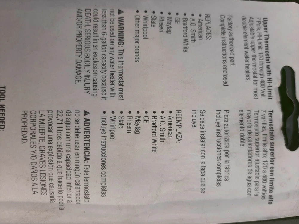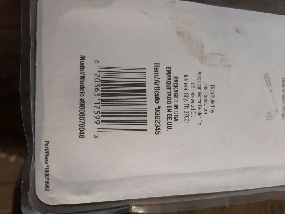 Items Included:AdapterPower Source:Corded Electric, BatteryBrand:UtilitechUPC:0020363175993Tank Capacity:Less Than 20 galCompatible Model:321898-000gtin13:0020363175993Item Weight:2 lbGTIN:0020363175993Type:Water Heater ElementPower:1000 W or LessColor:SilverMaterial:PlasticModel:UpperCompatible Product:Point-Of-Use Water Heater, Storage Tank Water HeaterVoltage:240 VItem Diameter:5 inItem Height:9 in