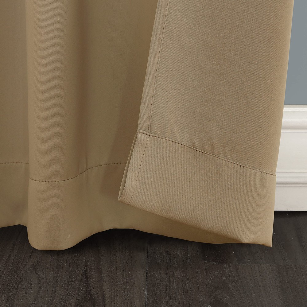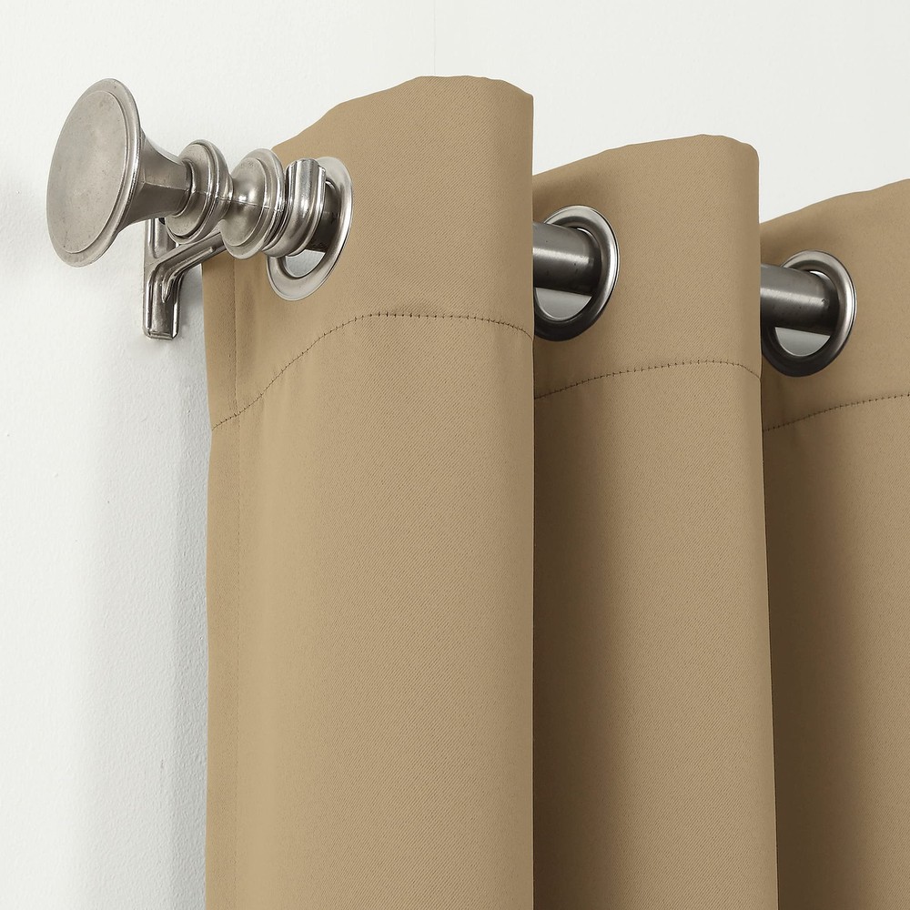 Soho Energy Efficient Blackout Grommet Curtain Panel Pairs infuse a modern sophistication into any living space. Equipped with built-in metal grommets for easy hanging on standard curtain rods up to 1.5" in diameter. Blackout technology blocks out most outside light, offers outside noise reduction by up to 30%, and decreases energy lost through your windows by up to 40%. Comfort is optimized with thermal properties that help keep summer heat and winter chill out of your home. Hang in your living room for enhanced privacy, or in your bedroom for a sounder, more uninterrupted sleep. Pair includes 2 taupe panels, each measuring 54" width by 84" length. Measure carefully before selecting your desired size and quantity. Rod not included. Machine wash cold on gentle cycle. Use non-chlorine bleach when needed. Tumble dry on low heat, using a cool iron as needed. Blackout technology blocks out most unwanted light while enhancing privacy Energy efficient design reduces energy lost through your windows by up to 40% Thermal properties help keep summer heat and winter chill out of your home Noise reduction up to 30% helps you get a sounder, more uninterrupted sleep Built-in metal grommets fit curtain rods up to 1.5" in diameter Pair includes 2 panels