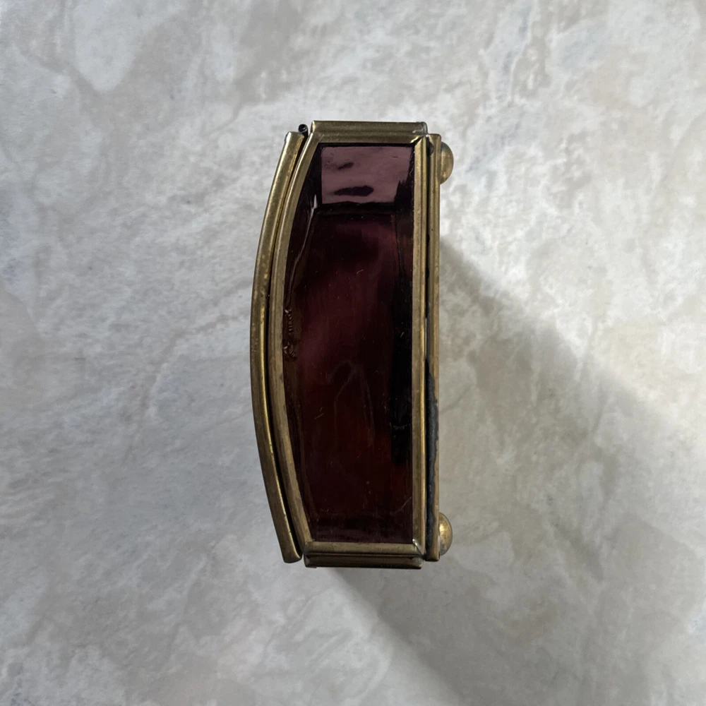 Enesco Art Guardian Angel Trinket Jewelry Box Shimmery Purple Gold Glass Brass