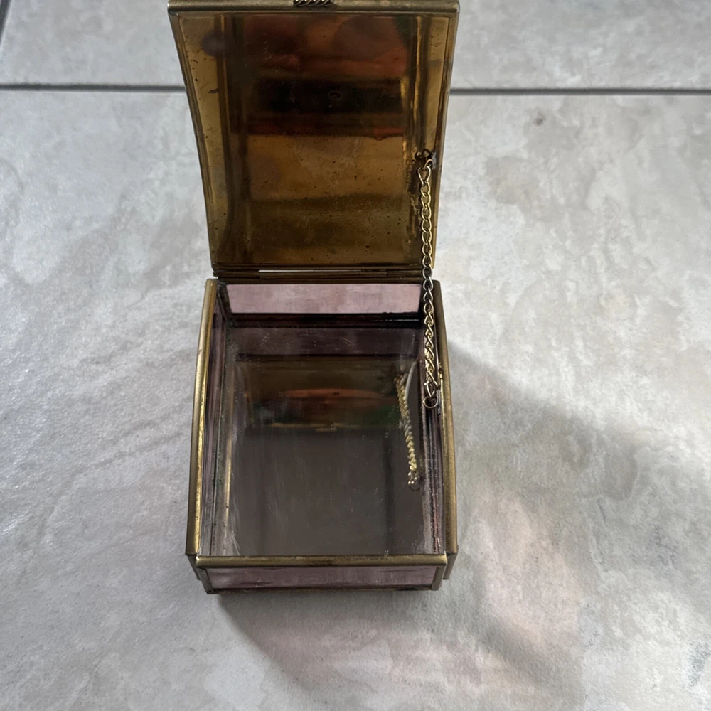 Size: Medium Shape: Rectangular Pattern: Guardian Angel Theme: Kids Material: Glass, Brass, Mirror Time Period Manufactured: 1990-1999 Color: Purple, gold Type: Jewelry Box Collection: Enesco Original/Reproduction: Original Country/Region of Manufacture: Mexico Brand: Enesco gtin13: Does Not Apply Style: Victorian Subject: Guardian Angel Features: Shimmery, mirrored Finish: Mirrored Occasion: All Occasions UPC: Does Not Apply