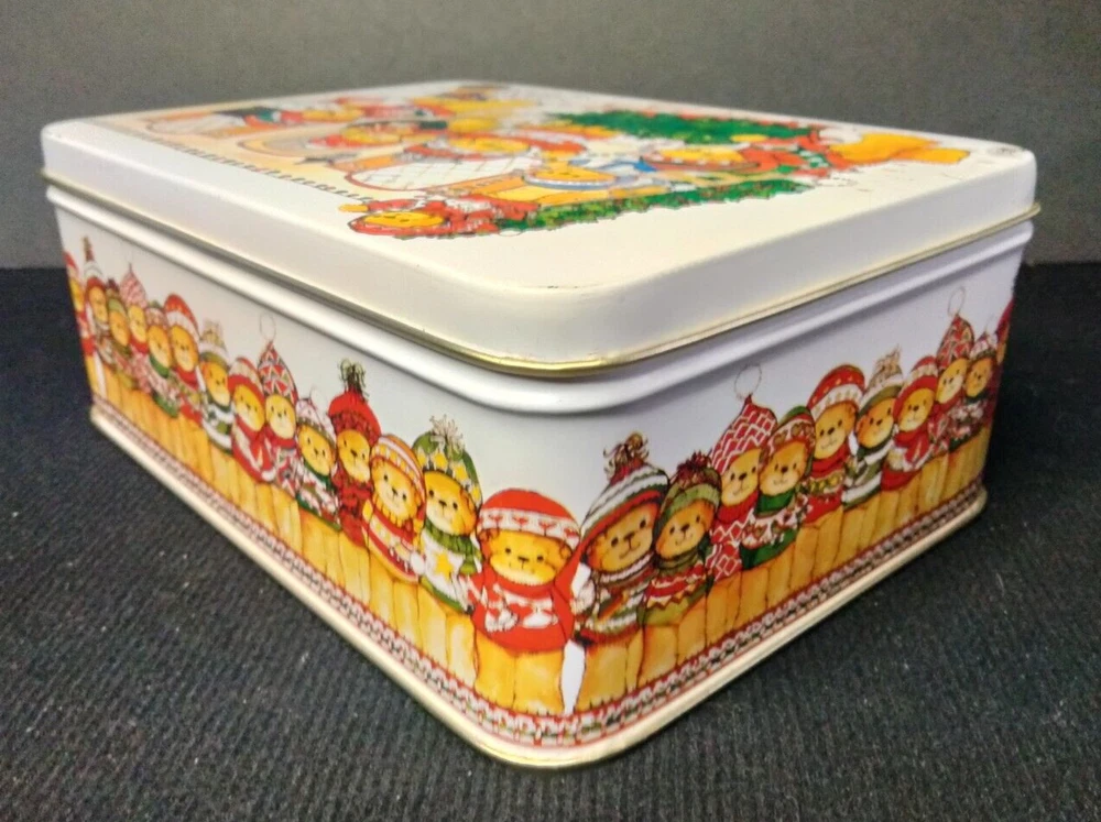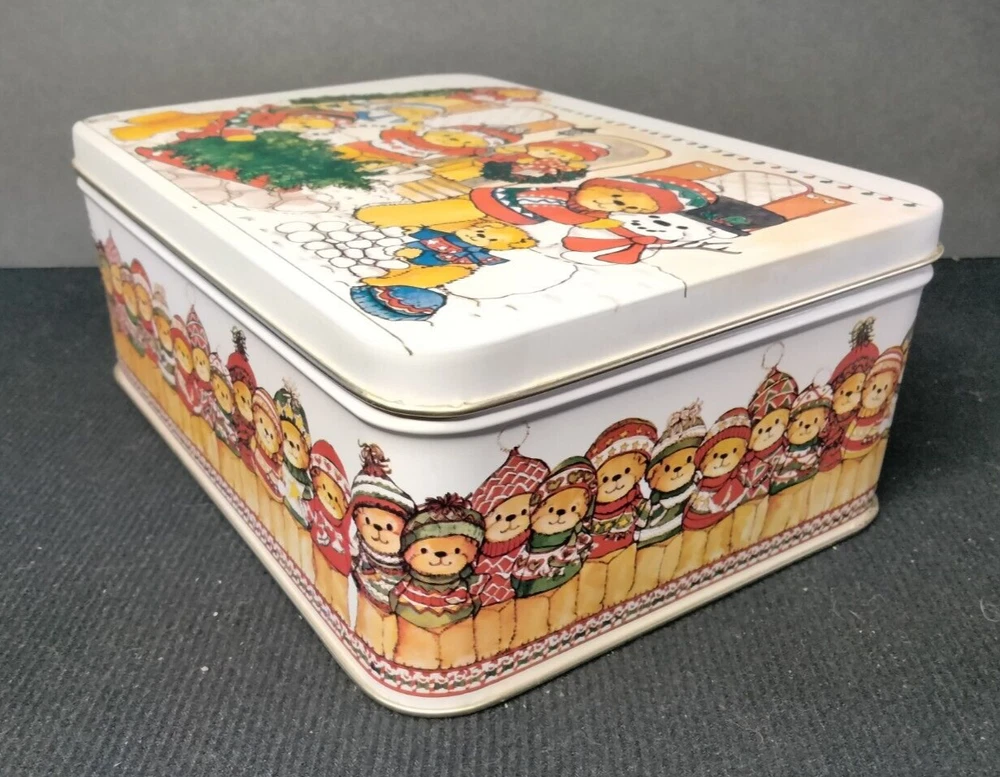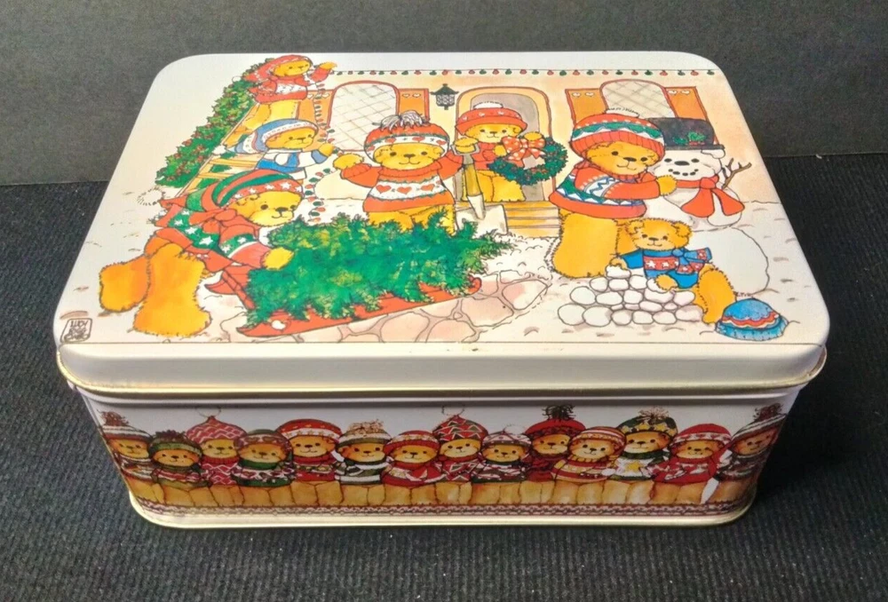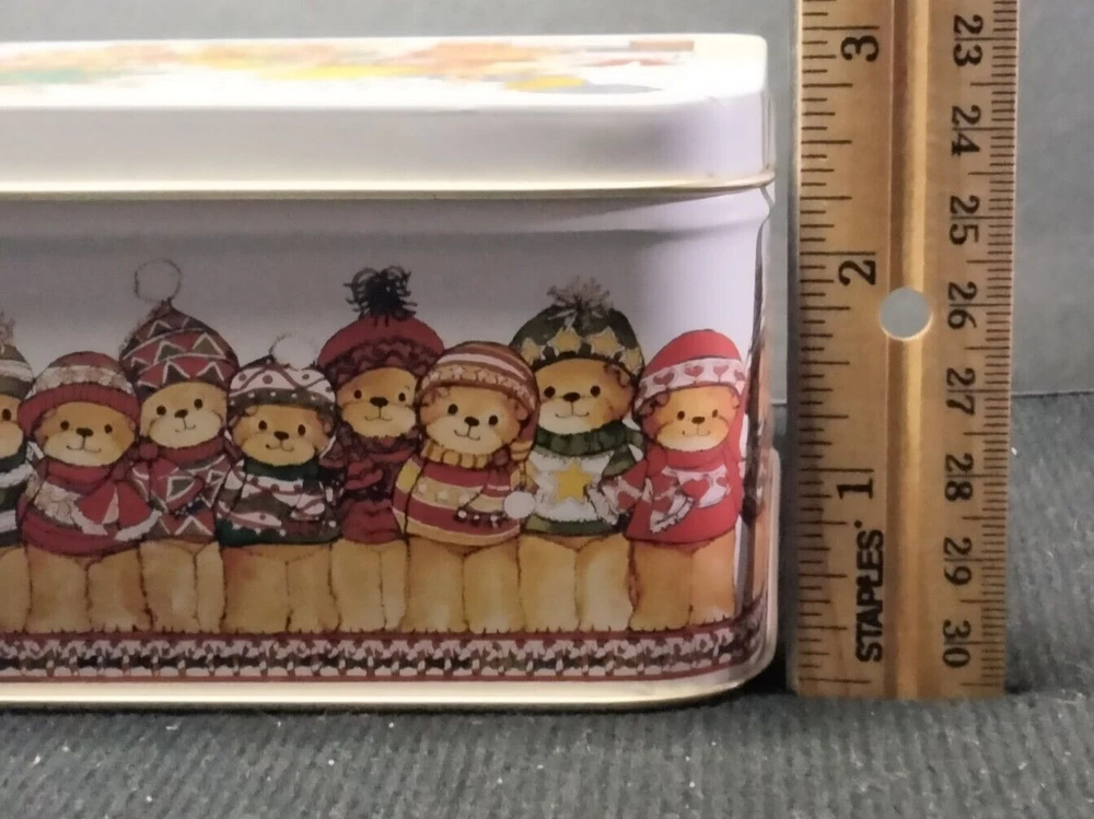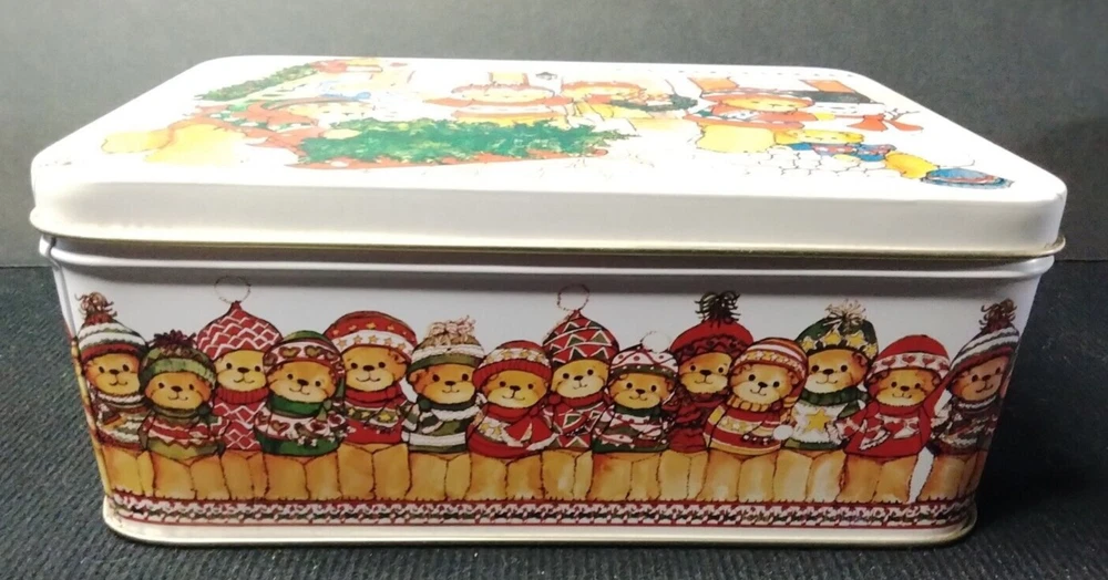 Shape: Rectangle Country/Region of Manufacture: Hong Kong Packaging: Box gtin13: Does not apply Material: Metal Closure Type: Lid Department: Kids, Teens, Adults Size: Medium Type: Box Handmade: No Subject: Bear Finish: Painted Customized: No Style: 1980s Pattern: Bears Time Period Manufactured: 1980-1989 Occasion: Christmas Number in Pack: 1 Brand: Enesco Original/Reproduction: Licensed Reproduction Engraved: No Features: Boxed Theme: Christmas Color: Multicolor UPC: Does not apply