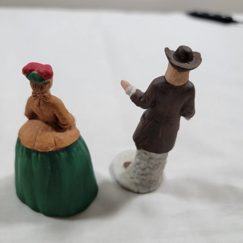 Subject: Couple Style: Colonial Finish: Matte Country/Region of Manufacture: Taiwan Material: Porcelain Brand: Enesco Character Family: Colonial Time Period Manufactured: 1980-1989 Department: Adults Type: Figurine Collection: Enesco Pattern: Characters Theme: Williamsburg Occasion: All Occasions Color: Multicolor