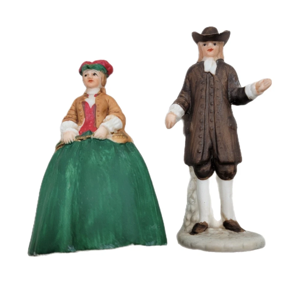 Enesco Williamsburg Village Figurines Man Woman Vintage Colonial Pair
