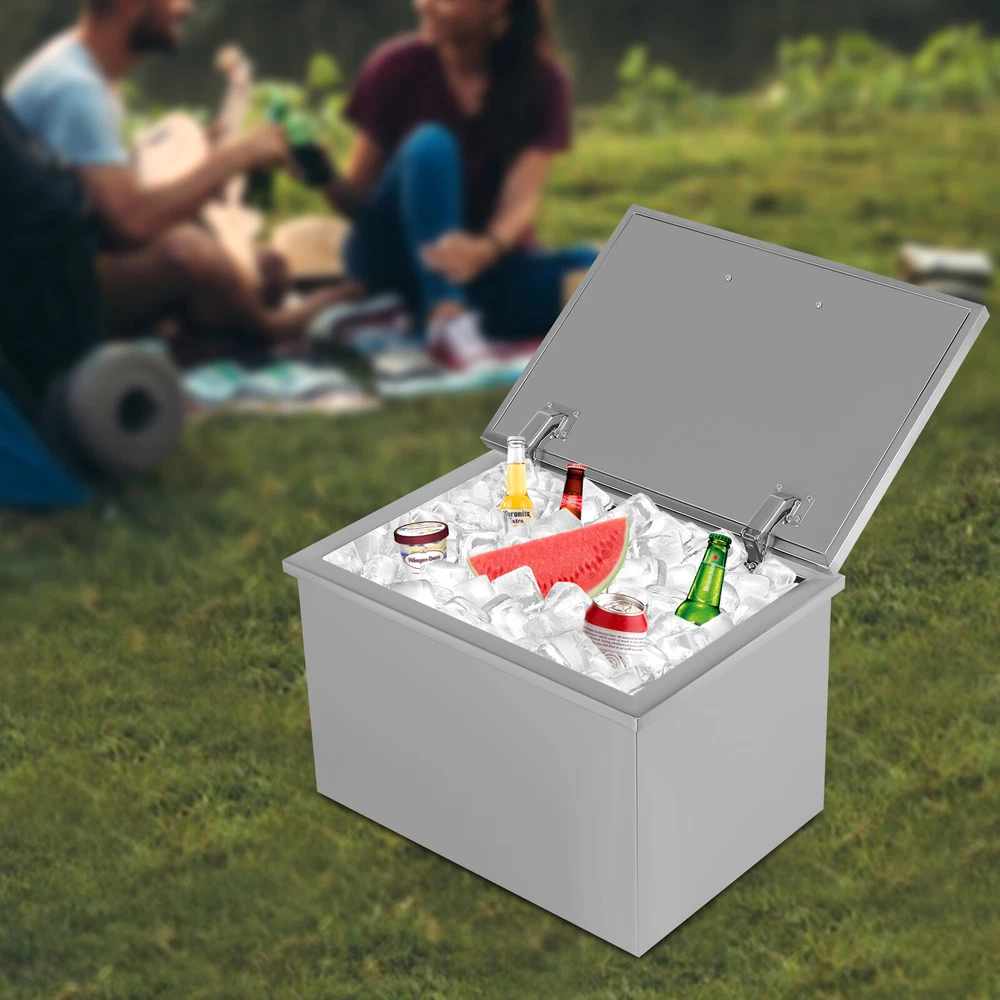 Specifications Color: Silver Material: 304 Stainless Steel Shape: Rectangular Capacity: 30L= 31.7Qt Insulation Temperature Range: -5℃-91℃/23℉-194℉ Foam Insulation Layer Thickness: 2cm/0.78in Net Weight: 9kg/19.84lbs Gross Weight: 10kg/22.1lbs Package Size: 55*40*39cm/21.7*15.7*15.4inch Product Size: 50.5*35.5*33cm/20*14*13inch Water Drainage Hose Length: 1m/3.2ft Package Included 1* Drop-in Ice Chest 1* Lid 1* Handle 1* Water Drainage Hose 1* Filter Basket Other Accessories for Assembly Drop In Ice Chest Bin Wine Chiller Cooler with Cover Home Kitchen 20''x14''x13'' Description It's a great pleasure to have an iced drink in the hot summer. But traditionally electric refrigerator isn't available everywhere. This drop-in ice chest with a large capacity (30L= 31.7Qt) is your ideal choice for outdoor activities. Made of high-quality stainless steel, it is strong, durable, and not easy to rust. The excellent insulation performance can bring you cold drinks for a long time. It will be a great addition to your outdoor party. Key Features Premium Material: This product is made of food-grade 304 stainless steel, which is odorless, harmless, anti-rust, strong, durable, and not easy to deform. Excellent Performance: The double-walled design, built-in thickened foam, and lid can effectively prevent cold air from escaping and keep your ice solidified to keep your drinks cool for a long time. Large Capacity: The large capacity of 30L= 31.7Qt allows it to easily store and cool large quantities of ice, drinks, or frozen foods to meet your home and commercial needs. Saving Space: With a drop-in design, it will not take up too much space in the kitchen, especially suitable for small kitchens. Quick Drainage: With a drain hole at the bottom, a drain plug, and an extended water drainage hose, it can quickly drain water. As a result, it also can be used as an outdoor sink and is suitable for an outdoor kitchen, party, resort, bar, etc. Easy Assembly: This product is simple in structure and complete in the package. You only need a few simple steps to install it, which is very time-saving and labor-saving. Outdoor Available: You can take it to outdoor places, bringing cold drinks to your party without the need for an electric refrigerator to create happy memories. Easy to Clean: The stainless steel surface is smooth and flat without grooves to hide dirt, making it easy to clean. You can directly rinse it with water and dry it. Customer Service: We aim to provide quality products and services. If you have any problems, please feel free to contact us. We will reply and solve the problem for you as soon as possible. Details Ergonomic Handle: The handle on the lid is curved and ergonomic with a smooth surface, which makes it easy for you to open or close the lid and can prevent scratching your hands. Lid: The lid makes the product well sealed to allow for a better insulation effect and prevent the internal ice or drinks from being contaminated. Meanwhile, the two hinges make it easy for you to open and close the lid. Application It is widely used in dinner parties, parties, bars, kitchens, offices, etc. for keeping wine, beer, whiskey, beer, cocktails, vodka, juice, and frozen food fresh. Specifications Color: Silver Material: 304 Stainless Steel Shape: Rectangular Capacity: 30L= 31.7Qt Insulation Temperature Range: -5℃-91℃/23℉-194℉ Foam Insulation Layer Thickness: 2cm/0.78in Net Weight: 9kg/19.84lbs Gross Weight: 10kg/22.1lbs Package Size: 55*40*39cm/21.7*15.7*15.4inch Product Size: 50.5*35.5*33cm/20*14*13inch Water Drainage Hose Length: 1m/3.2ft Package Included 1* Drop-in Ice Chest 1* Lid 1* Handle 1* Water Drainage Hose 1* Filter Basket Other Accessories for Assembly Notes Please allow the slight color difference caused by the shooting light and 1-3cm error due to manual measurement, and make sure you do not mind before you order. Payment Delivery details Terms of sales About us Contact us Payment We accept ebay payment 。 Fees such as import duties, taxes are not included in the item price or shipping costs. These charges are the buyer's responsibility. Delivery details Shipping: 2-9 working days to: USA Terms of sales We maintain high standards of excellence and strive for hundred percent customer satisfaction. Feedback is very important to us. We hope that you contact us immediately before you give neutral or negative feedback, so that we can address your concerns. It is impossible to address issues if we do not know about them! About us Your satis faction is our ultimate goal. We work hard to earn your trust and future business. Our certified technicians have tested each item before shipping. The unit comes with 1 year limited warranty on all manufacturing defects. a) If you receive a defective item, you may return it or ask for a discount. Please contact us within 14 days after you receive the package. b) What you returned must be intact and in its original packaging as re? u. Customer is responsible for shipping costs of the returned item. c) We will cover the cost of shipping back t with the shipping rate indicated in the registration page. We will send you a new unit or refund the full payment you paid. Thank you. Contact us Business Hour Business Hour: Monday To Friday: 8:30 AM to 5:00 PM (Beijing China time) Due to time zones, our reply to your questions may not be immediately. But within above working time, we will reply your email within 24 hours. If it's non-workdays, please kindly be patient and wait till Monday. Please contact us with ebay message. Please feel free to contact us if you have any questions. Monday To Friday: 8:30 AM to 5:00 PM (Beijing China time) Due to time zones, our reply to your questions may not be immediately. But within above working time, we will reply your email within 24 hours. If it's non-workdays, please kindly be patient and wait till Monday. Please contact us with ebay message. Please feel free to contact us if you have any questions. On Feb 5, 2025