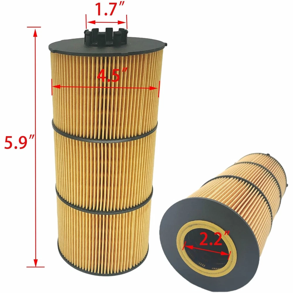 Replacement Filter For P551005 Oil/Lube Filter A4721800109 High Flow Design Product Description Replacement Part Number: Replacement For P551005, LF17511, LF17474, P7505, 57909, 4721800509, A4721800509, E510H04D129, E510H06D129, LF673, LF5090, 4721800309, 4721840525, 472 184 0525. 98% Filtration Efficiency: High-flow design with multi-layered synthetic fiber media captures 98% of contaminants. While maintaining optimal oil pressure. Long-Lasting Protection: Superior filtration performance significantly reduces engine wear, effectively extending the life of core components and overhaul intervals, ultimately lowering your total cost of ownership. Easy Installation: No tools required for DIYers or fleet mechanics. Compatible with the following: For 2012-2014 108SD L6 12.8L For 2012-2020 114SD L6 12.8L For 2014-2020 122SD L6 12.8L/14.8L/15.6L For 2009-2019 Cascadia L6 12.8L For 2008-2020 Cascadia L6 14.8L For 2010-2019 Cascadia L6 15.6L For 2013-2016 L6 12.8L/14.8L For 2007-2011 Century Class, Century Class S/T, C112, CST112, C120, CST120 L6 14.8L For 2010-2011 Columbia, CL112, CL120 L6 12.8L For 2008-2011 Columbia, CL112, CL120 L6 14.8L For 2010-2019 Coronado, CC122, CC132 L6 12.8L/14.8L/15.6L For 2010-2019 M2 112 L6 12.8L For 2012-2020 4700SB L6 12.8L For 2012-2020 4700SF L6 12.8L For 2012-2016 4800SB L6 12.8L For 2012-2016 4800SF L6 12.8L For 2012-2016 4800TS L6 12.8L For 2011-2016 4900EX L6 12.8L For 2009-2018 4900EX L6 14.8L For 2011-2018 4900EX L6 15.6L For 2016-2020 4900FA L6 12.8L For 2009-2017 4900FA L6 14.8L For 2010-2017 4900FA L6 15.6L For 2011-2018 4900SA L6 12.8L For 2009-2018 4900SA L6 14.8L For 2011-2017 4900SA L6 15.6L For 2012-2016 4900SB L6 12.8L/14.8L/15.6L For 2012-2020 4900SF L6 12.8L For 2012-2016 4900SF L6 14.8L/15.6L For 2012-2016 4900TS L6 12.8L/14.8L/15.6L For 2012-2016 4900XD L6 12.8L/14.8L/15.6L For 2016-2017 5700XE L6 12.8L/14.8L/15.6L For 2012-2016 6900TS L6 14.8L/15.6L For 2010-2016 6900XD L6 14.8L For 2011-2016 6900XD L6 15.6L