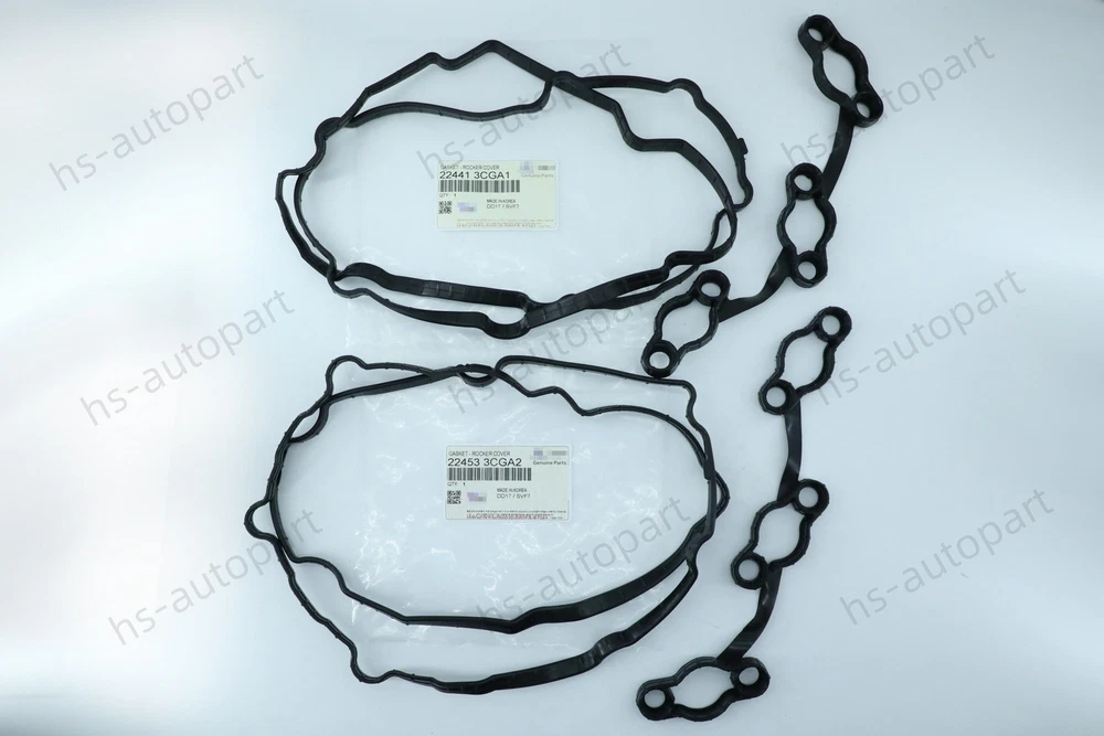 Product Description Condition : New Manufacturer Part Number: 22441-3CGA1, 22453-3CGA2 Fits: 2012-2016 Hyundai Azera 3.3L 2012-2015 Hyundai Genesis 3.8L 2012-2016 Hyundai Genesis Coupe 3.8L 2012-2016 Hyundai Santa Fe 3.3L 3.5L 2012 Hyundai Veracruz 3.8L 2013-2015 Hyundai Santa Fe XL 3.3L 2014-2015 Kia Cadenza 3.3L 2015 Kia K900 3.3L 2012,2014-2015 Kia Sedona 3.3L 3.5L 2012-2015 Kia Sorento 3.3L 3.5L Package included: 2 x Valve Cover Gasket Kit On Feb 4, 2025 at 20:03:40 PST, seller added the following information: