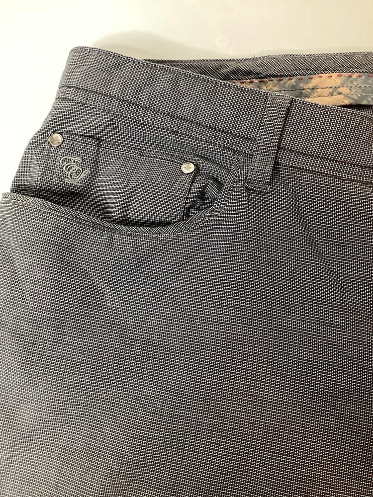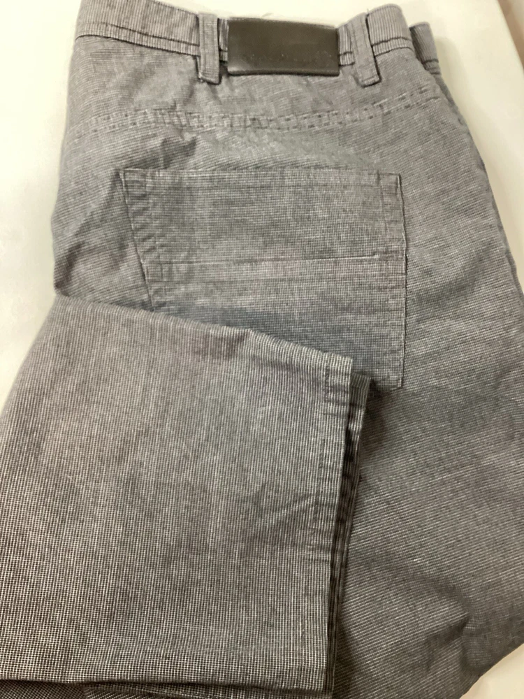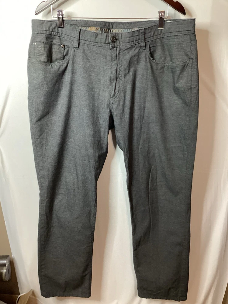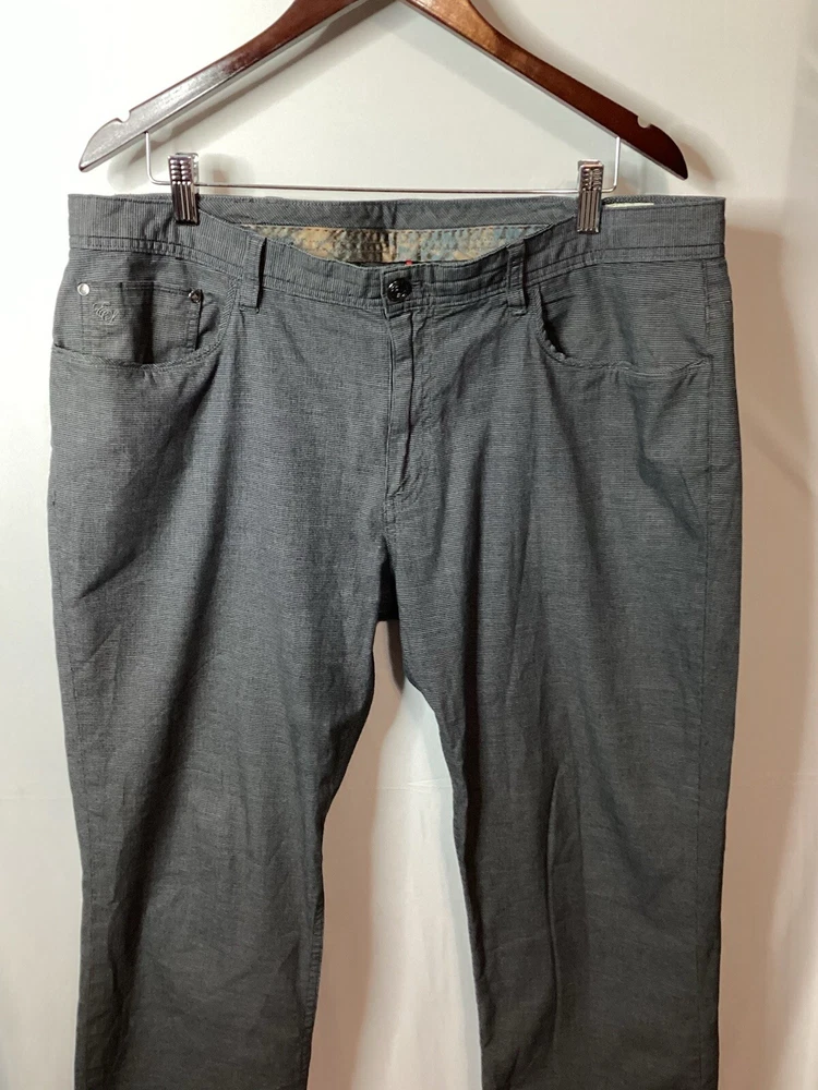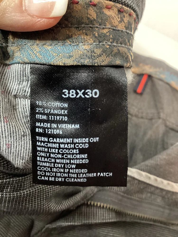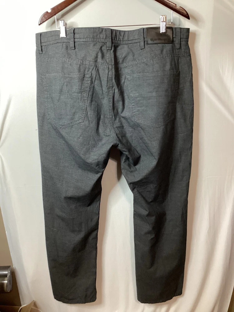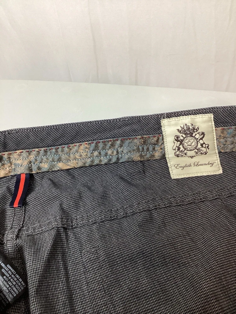 These English Laundry Brixton men's dress pants feature a classic black and white color scheme with a size of 38x30. Made from a comfortable blend of spandex and cotton, they offer a regular fit and a straight leg style. The pants are designed with a flat front, 5-pocket design, and feature both buttons and zippers as closures. Suitable for various occasions including travel, casual wear, and business attire, these pants also provide stretch and pockets for added convenience.