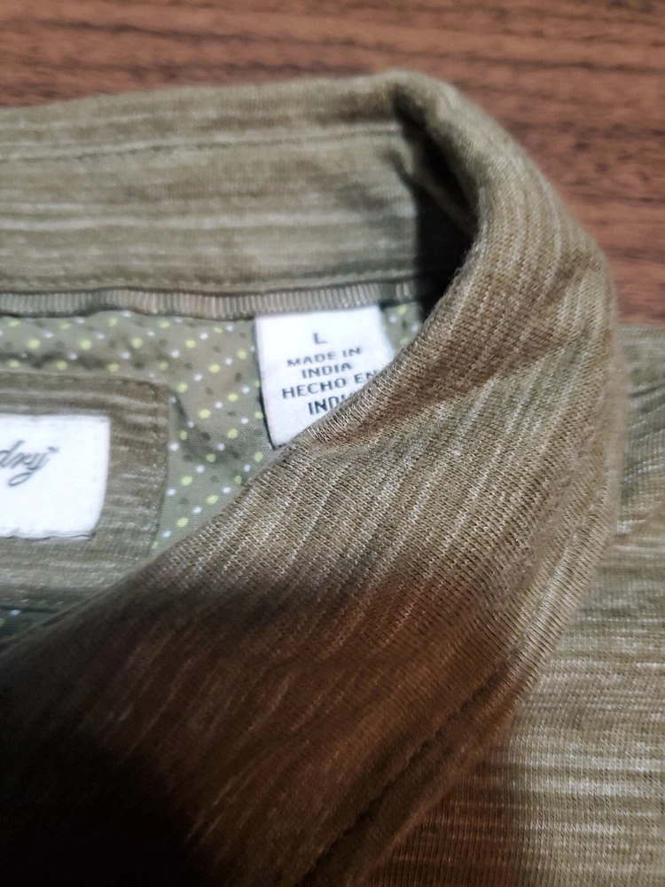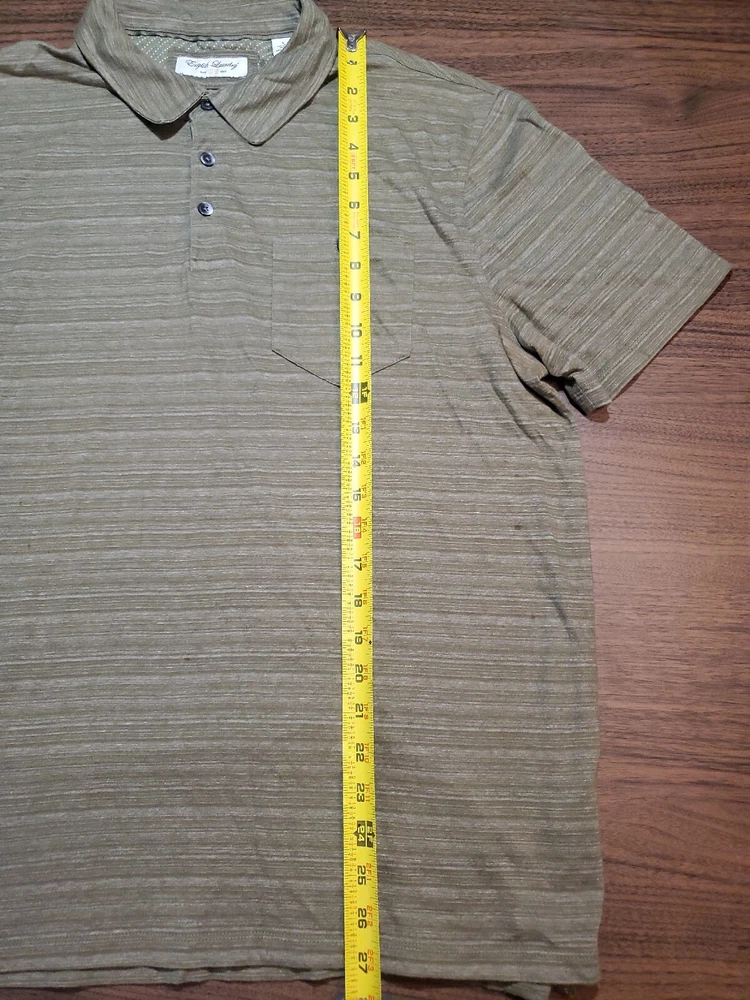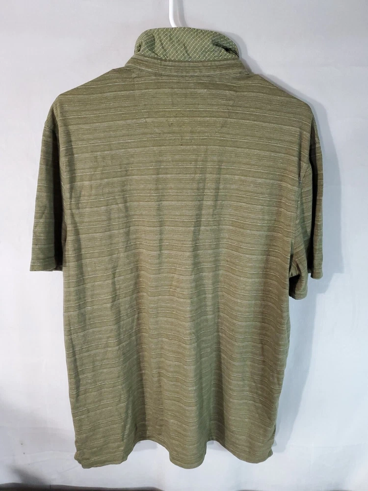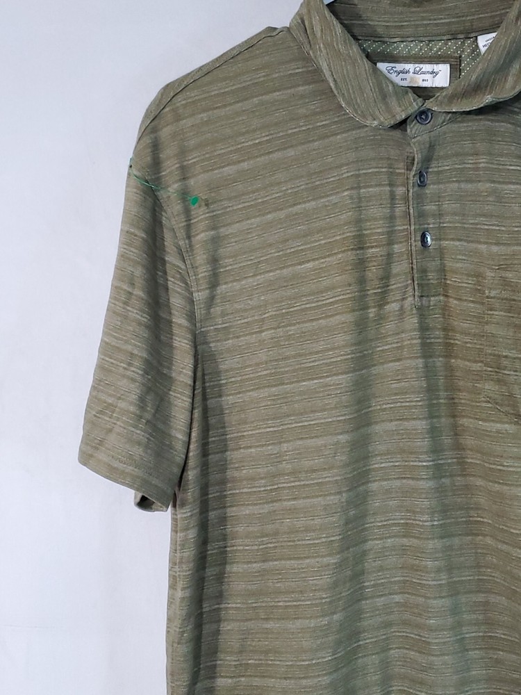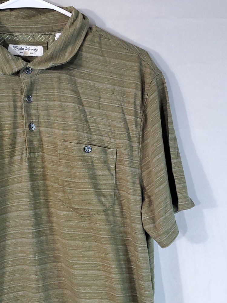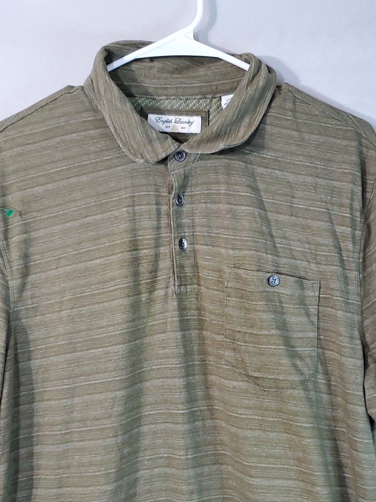 Material: Cotton Blend Neckline: Collared UPC: Does not apply Sleeve Length: Short Sleeve Features: Pockets Vintage: No Color: Green Fit: Athletic Size Type: Regular Fabric Type: Blended Fabric Model: n/a Type: Polo gtin13: Does not apply Department: Men Fabric Wash: Light Performance/Activity: Golf Character: Eddie Size: XL Brand: English Laundry Pattern: Striped Product Line: n/a Theme: Sports