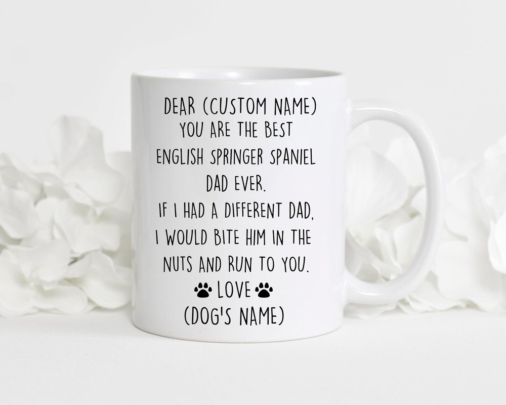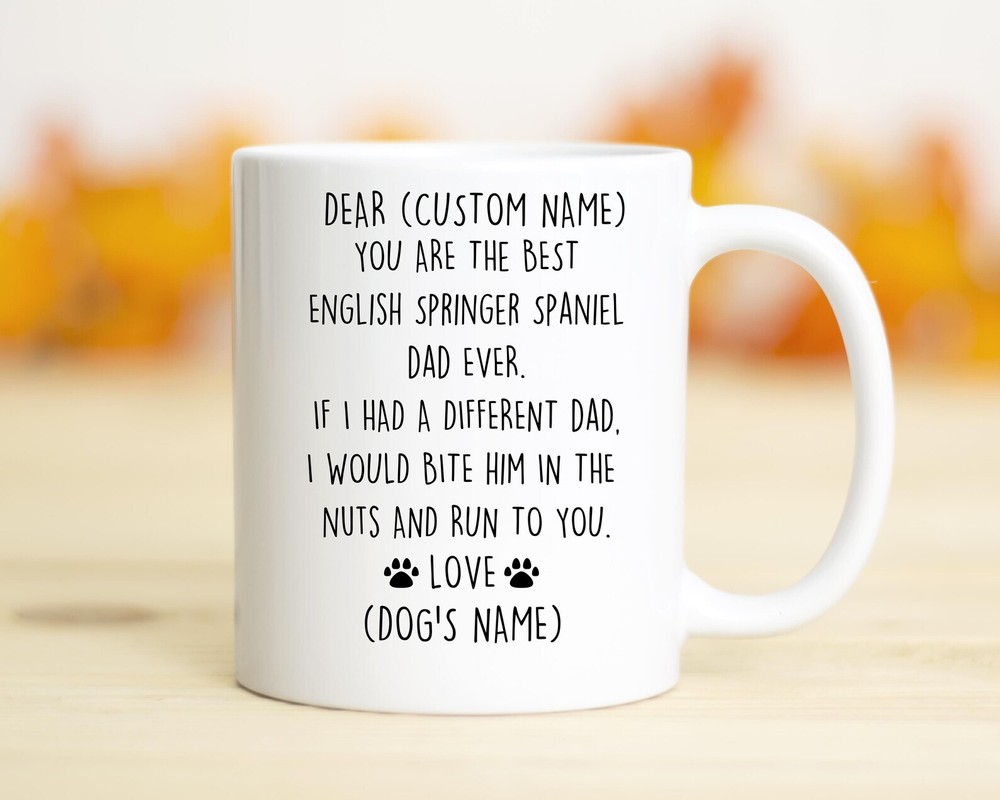 English Springer Spaniel Dad Birthday Gift English Spaniel Dad Christmas Gift Ess Dad Valentine Gift English Spaniel Dad Appreciation Product Details.. This high quality 11oz. ceramic white mug has a premium hard coat that provides crisp and vibrant color reproduction sure to last for years. Perfect for all hot & cold beverages. The highest quality printing possible is used. It will never fade no matter how many times you wash it. Material: 100% Ceramic. Print both sides. Dishwasher and Microwave Safe. High Gloss + Premium White Finish. Printed in the U.S.A. Personalized & Custom. We support personalized and custom mug to add custom, when placing an order, you can add notes to the "order note" in shipping address section. Also you can contact us directly via message. Shipping Info. Ready to ship in 1 to 2 business days, All products are made-to-order and proudly printed in the United States. Shipped by USPS and DHL, You will receive your order in 5-7 days. Replace & Refund. All products are defective during shipping broken, chipped will be replaced free of charge. You are not satisfied with the product, we will refund 100% money to you. If any other issues arise, please do not hesitate to message, we would be more than happy to assist you.