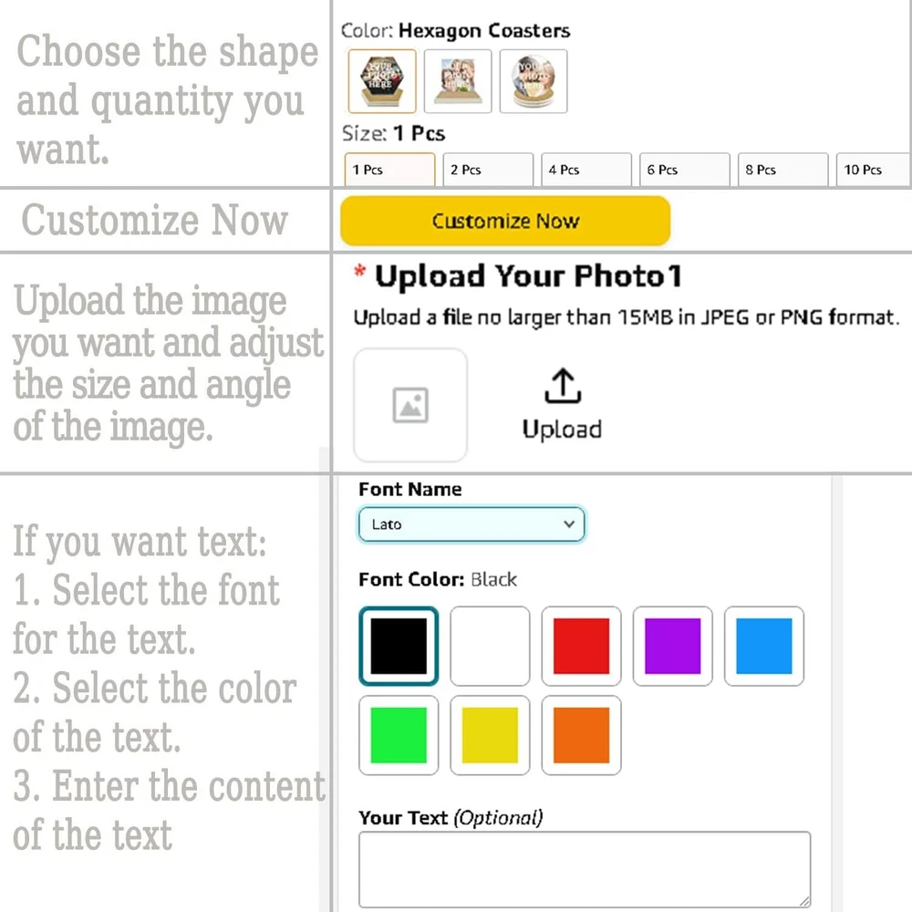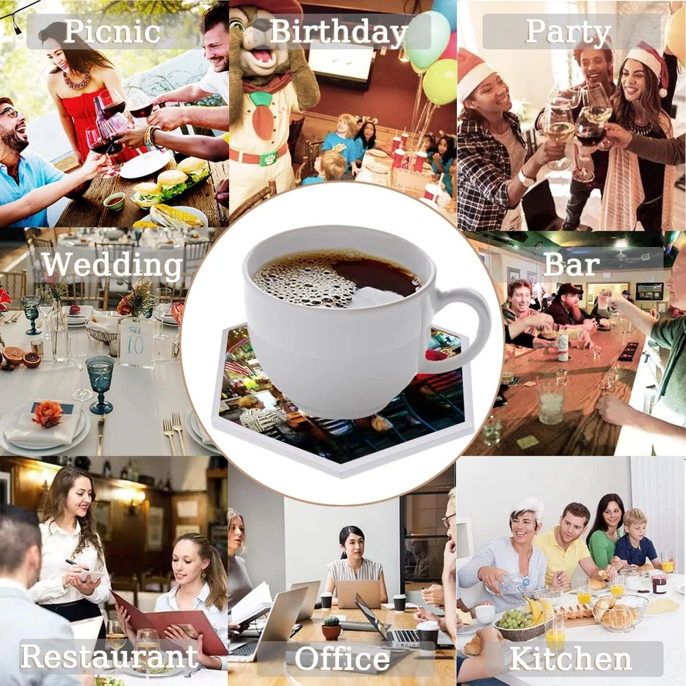 Product Description Custom Coasters Ceramics DIY Your Picture Text Logo Restaurant Gifts Ceramic & Strong Water Absorption This drink coasters is perfect for all almost cups and mugs. Whether you are looking for housewarming present or a unique accessory to add to your cocktail bar-ware set, this complete coaster set will not disappoint. Coasters With Cork The back of the coaster is an cork cushion that helps porcelain from scratching the table and has a NON-SLIP FEATURE that does not slip even on a smooth table. Design your coasters You can design your coasters with your favorite photo, text, image, or logo of your choice. We have 3 styles of personalized coasters: Square and Round coasters are 4x4 inches, Hexagon coasters are 4.3x 4.3 inches. 1-2-4-6-8-10 pcs to choose from. Pefect Housewarming & Chrismas Gift Payment 1 . We accept Paypal . 2 . We only ship to your Paypal's address, please ensure your shipping address on your paypal account is correct. If you have any change for address, please inform us in ebay note. 3 . Payment must be fulfilled within 7 days after purchase. All non-paying orders will receive an unpaid reminder from eBay. Shipping Once we have received cleared full payment, your items will be dispatched in 1-3 days. It normally takes : 7-14 business days for US, UK, Canada, Australia, Asian countries. 14-21 business days for Spain, German, Middle East countries. 18-25 business days for Russia, Brazil, Italy, France, European countries. 24-32 business days for South American countries. We send items by air mail to the buyer without track number. There maybe some delay due to flight, holiday, weather, local post, local natural disaster impact. if your shipment delays, we hope you can be patient, and at the same time contact us, we will try our best to help you. Import duties, taxes and charges are not included in the item price or shipping charges. These charges are the buyer's responsibility. Please check with your country's customs office to determine what these additional costs will be prior to bidding / buying. Return If any item is defective upon receipt or do not work, please contact us for the return address, return is accepted within 30 days after the buyer receiving the item. Returned item has to be in its original condition. Buyer is responsible for return shipping costs . After receiving the return we will make a replacement depends on our available stock, if not available, a refund will be issued. Contact us All products have been checked and packaged in good condition before dispatch. In case the item is defective, please inform us within 30 days after the package successfully delivered , we will do our best to help. If you have any enquiries, please contact us through eBay Message and clearly tell us what happened or what you need (No dispute, No Negative Feedback, No Neutral Feedback). If you have any enquiries or not satisfactory the item , please contact us priority before leaving any Neutral or Negative feedback or Open Dispute/Return Request. Communication is the fastest and most direct way to solve problems. Customer service hours: 8:30-18:00 Beijing time If you do not reply to you in time due to the time difference, please understand. We will reply to you as soon as possible within 8 hours. powered by