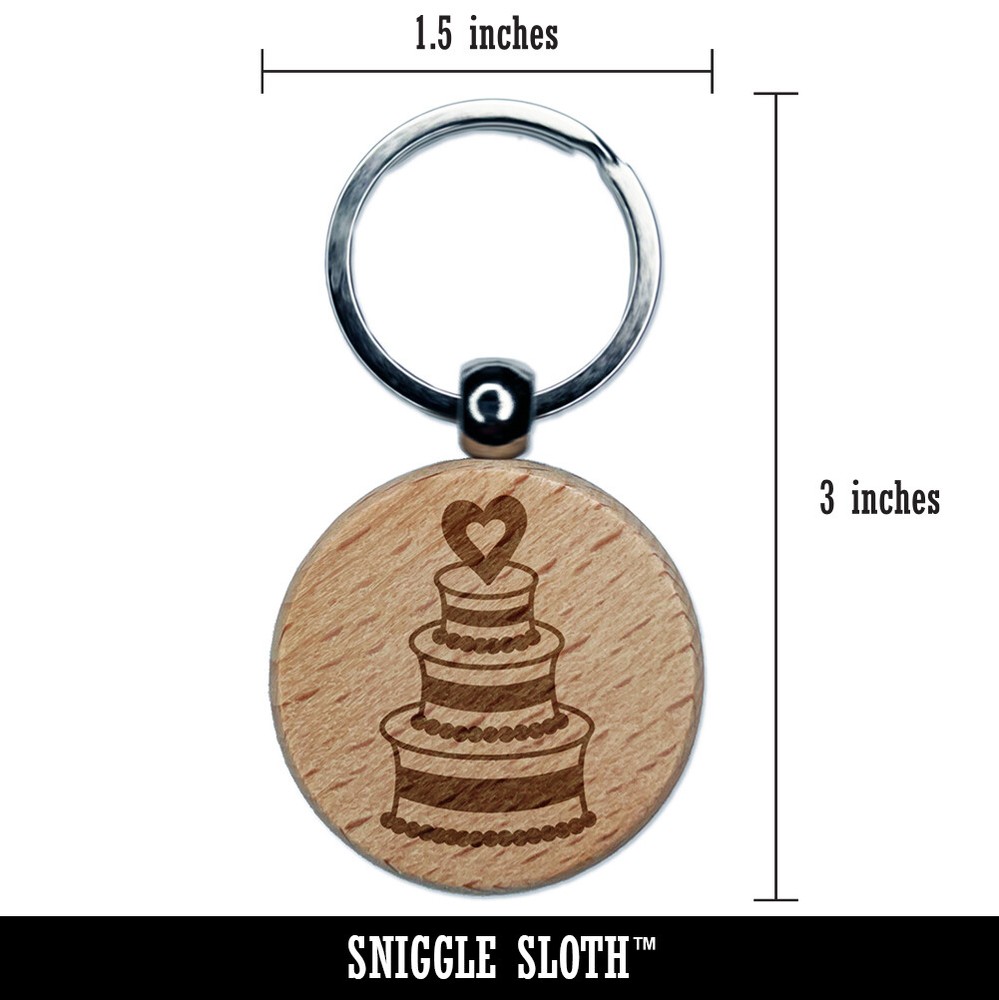 Engraved Heart Wood Round Keychain Tag Charm for Wedding Cake Theme