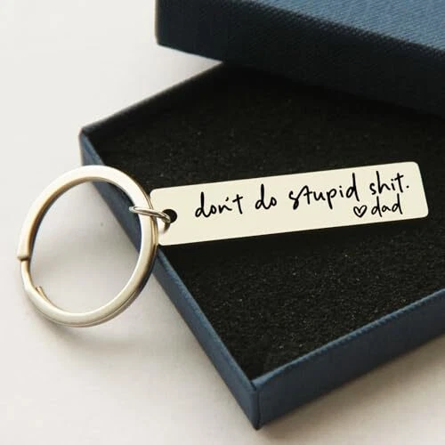Return Policy Fast Delivery Trusted seller Engraved Key Chain, Drive Safe Have Fun, Dad Gift to Kids, Graduation Keychain, New Driver, Gift from Dad, Gifts from Parents, Be Safe Keychain Product Description Don't Do Stupid Shit Keychain: A humorous and lighthearted engraved metal keychain, serving as a reminder with a touch of humor. Keychain Dimensions: Compact and stylish, with dimensions of 1/2"x2", and constructed with stainless steel rings and key rings, ensuring durability and a sleek aesthetic. Gift from Dad: A thoughtful gift from mom to her kids, daughter, or son, expressing care and humor in a practical accessory. Engraved Metal Keychain: Crafted from durable stainless steel, this keychain is engraved with a witty message, adding a personalized touch. Funny Keychain Gift: A uniquely amusing keychain gift from dad for kids, offering both a practical and humorous element to daily life. Shipping Returns Payment Shipping Shipping is FREE to all addresses other than APO/PO boxes in the lower 48 states. All our stock ships from US-based warehouses. Shipped via USPS or UPS (depending on location and package weight) Unless stated otherwise, all orders will ship within 24-72 hours of your payment being processed. Check our feedback to see the great reviews of FAST shipping we offer. Returns Seller does not accept returns Payment We currently accept payment via eBay managed payments only. Once payment is cleared, we will dispatch your shipment within 1-3 business days. Please refer to the "Shipping" tab for more information regarding shipping speed to your destination.