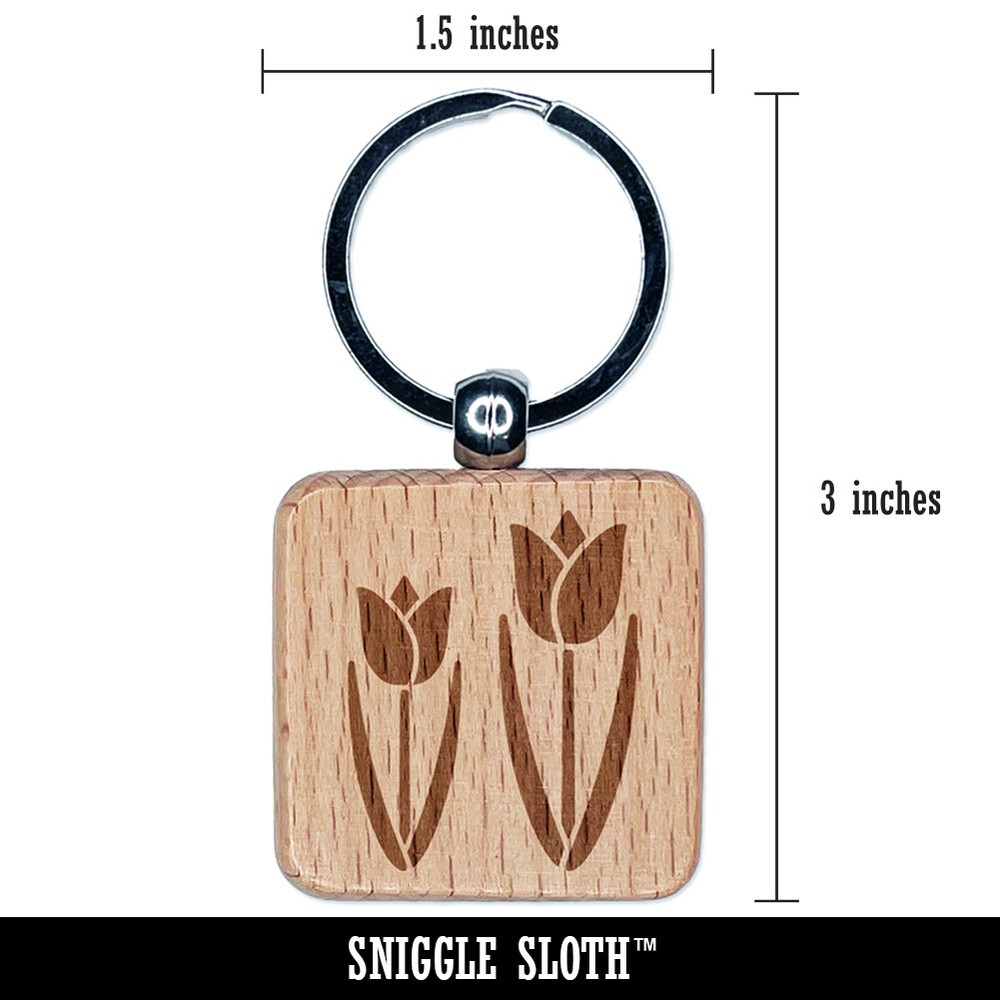 Engraved Wood Square Keychain with Tulip Pair Charm