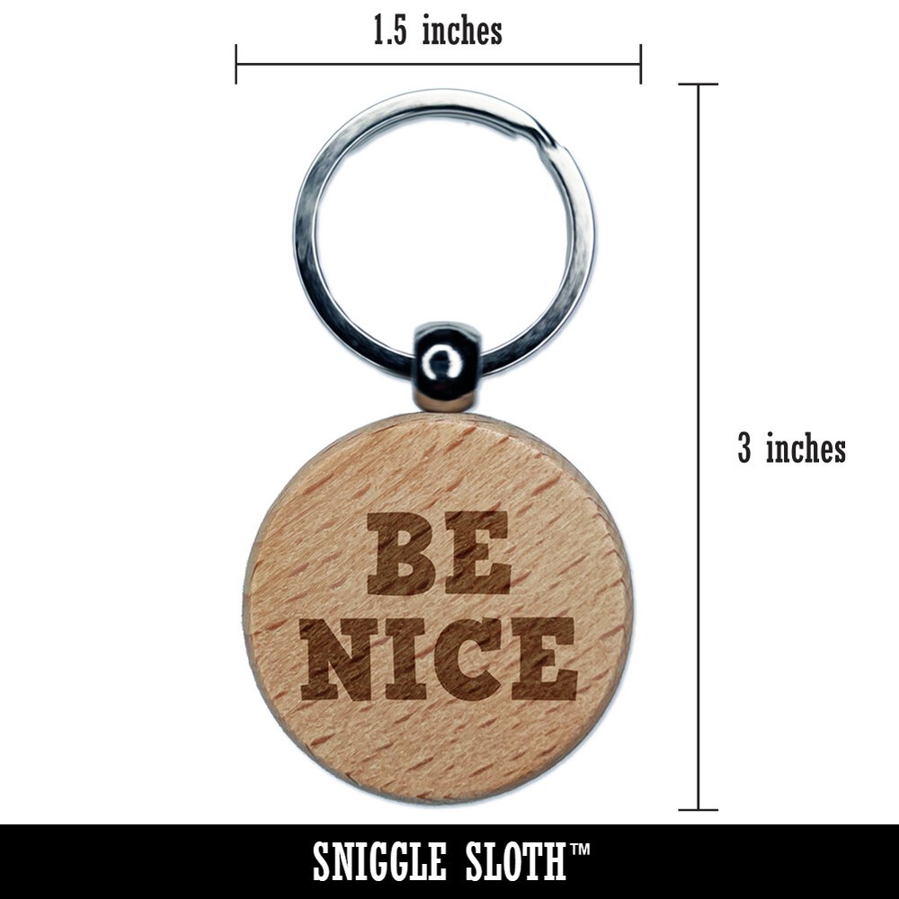 Engraved Wooden Keychain with Be Nice Fun Text Design