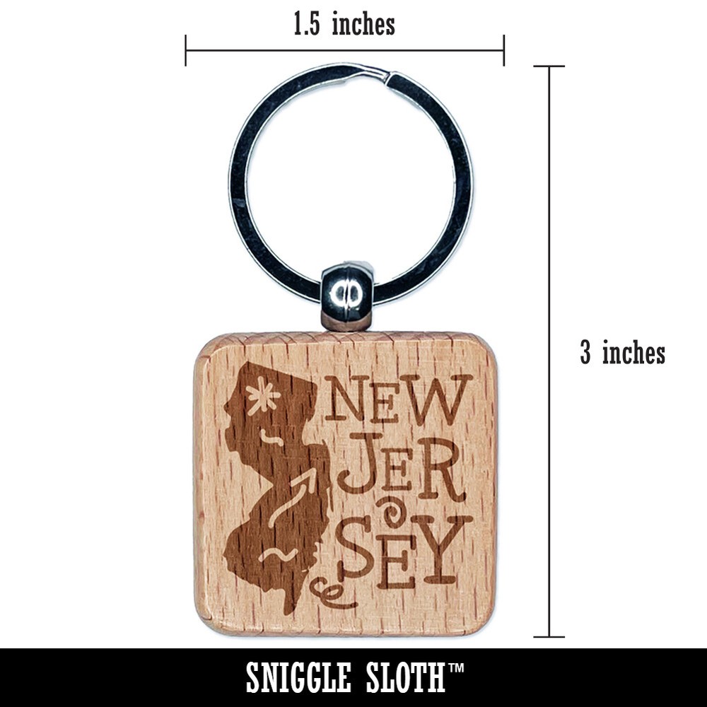 Engraved Wooden Keychain with New Jersey State & Swirl Design