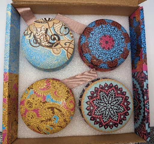 Enjoy Your Life 4 Piece Spice Up Your Life Aromatherapy Gift Soy Candle Set. None of the candles has ever been lit. The box has a slight amount of shelf wear but is still completely acceptable. Please see the photos. The four fragrances are Fig, Lemon, Lavender and Spring Flavor. Just opening the box lets out a wonderful aroma. They are made from soy wax and American essential oils. All of my items are carefully packed for shipping, no matter their value - $5 items are wrapped with the same care as a $200 item. My goal is to have your purchase arrive safely. I use recycled packaging when possible but mostly use new, high quality products so your item will arrive intact without damage. Large, heavy and fragile items are harder to use combined shipping with but just ask if you would like to purchase more than one item and I am more than happy to do so if feasible. If not, maybe we can work out a shipping discount. Thank you and hopefully you will visit my store again!