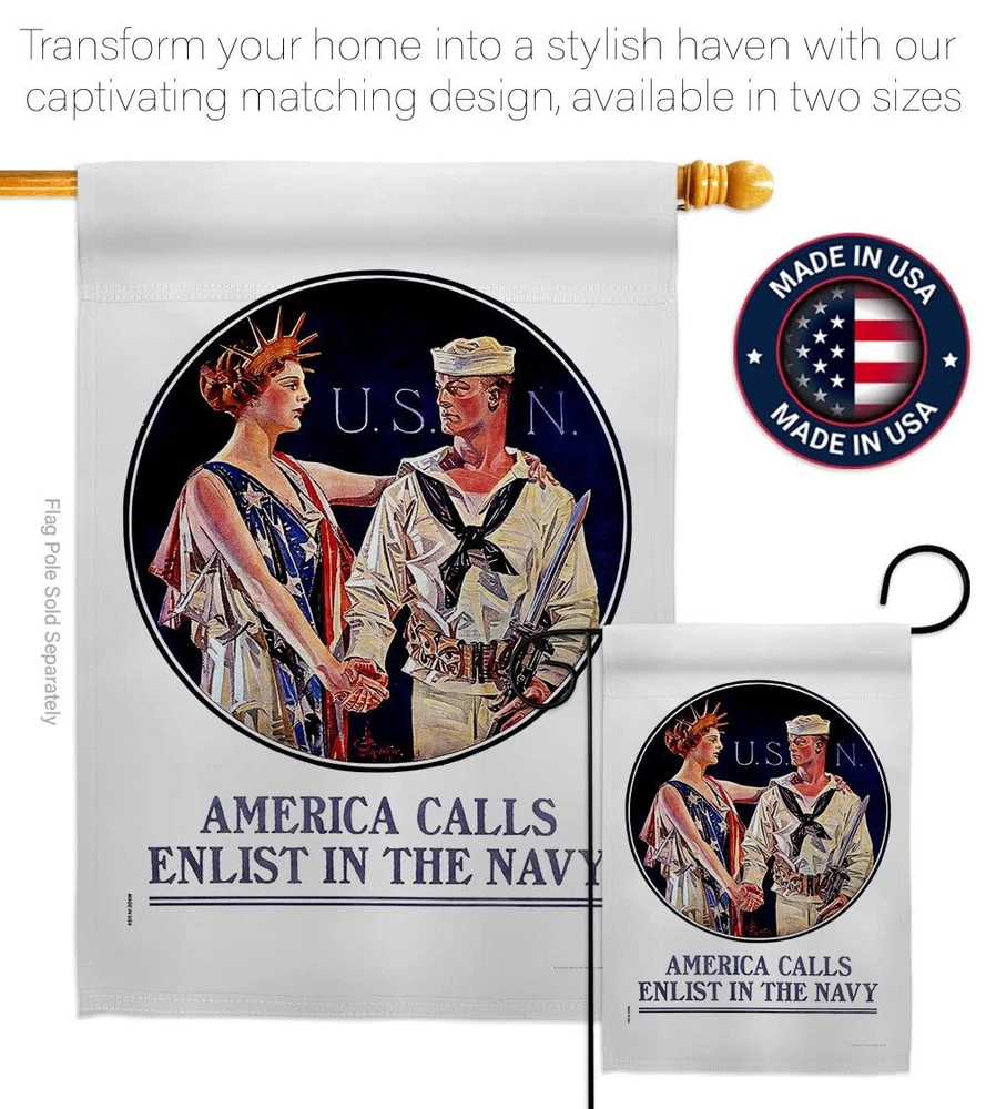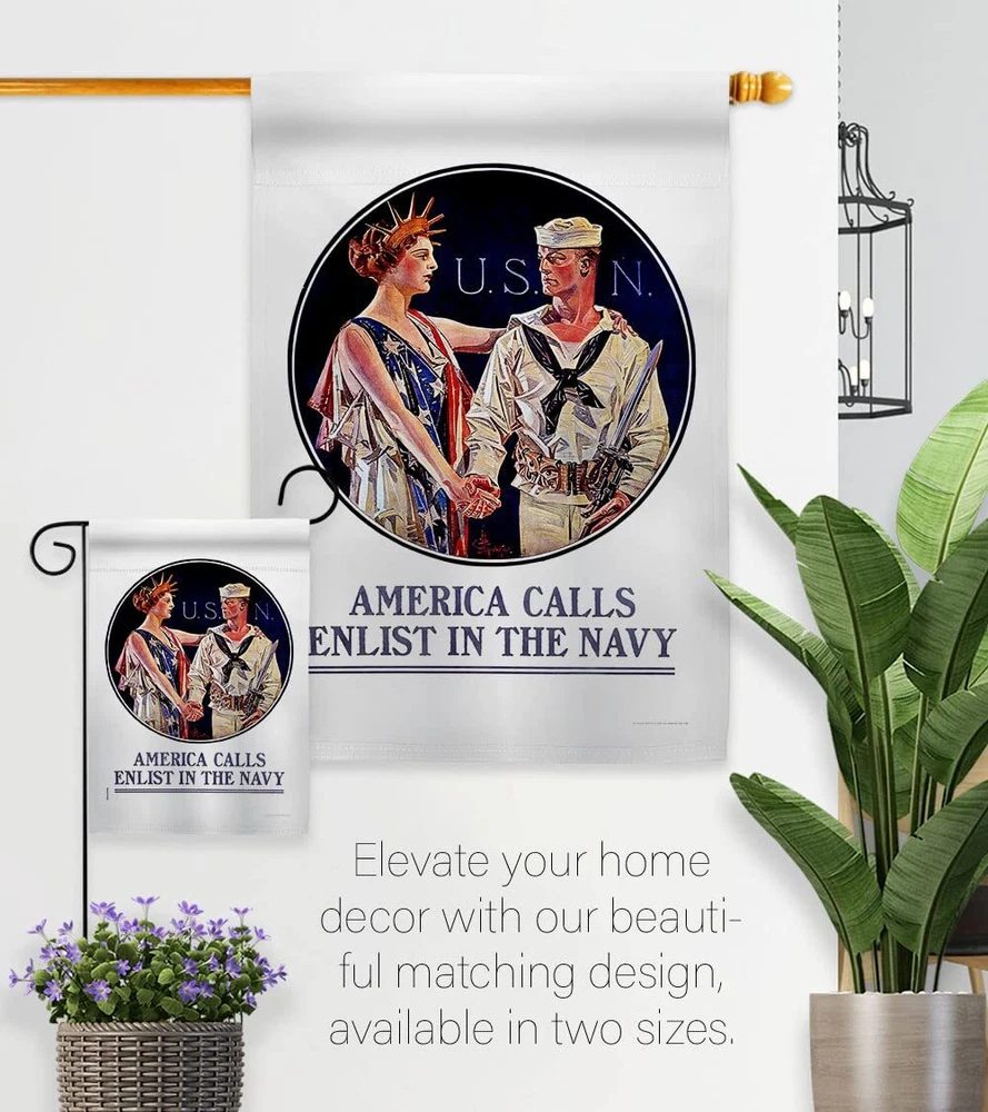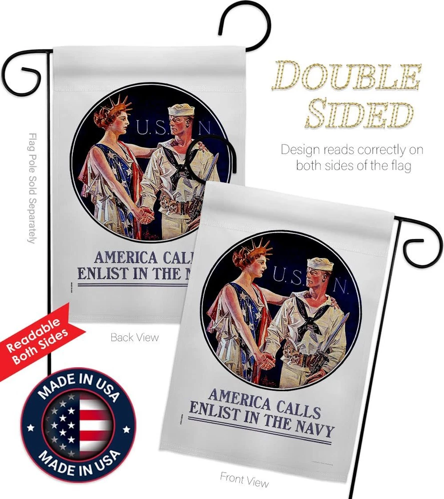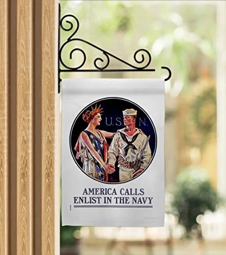 Enlist in The Navy Garden Flag Set Wall Holder Armed Forces USN Seabee United...