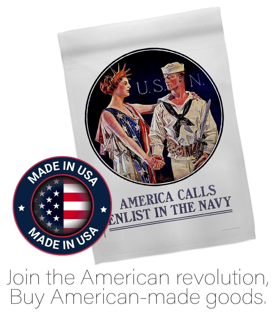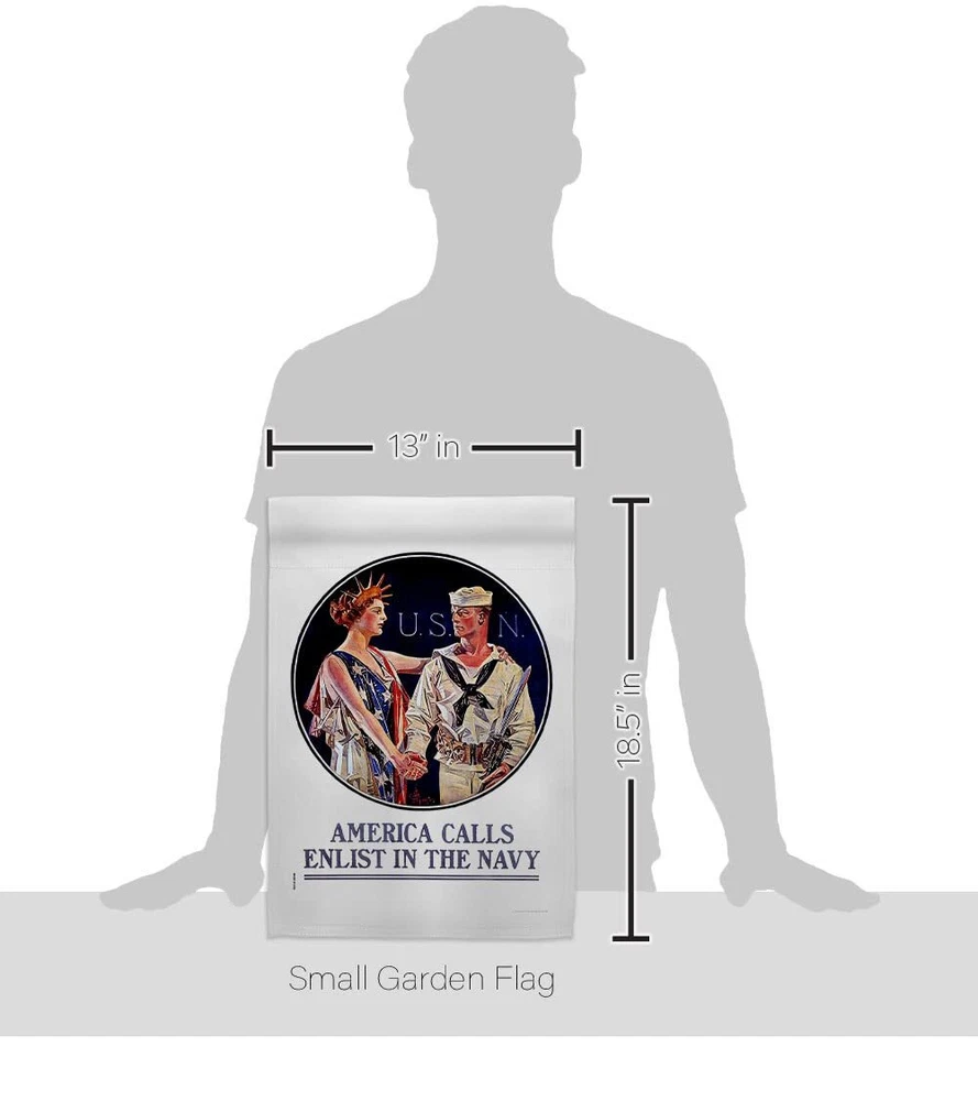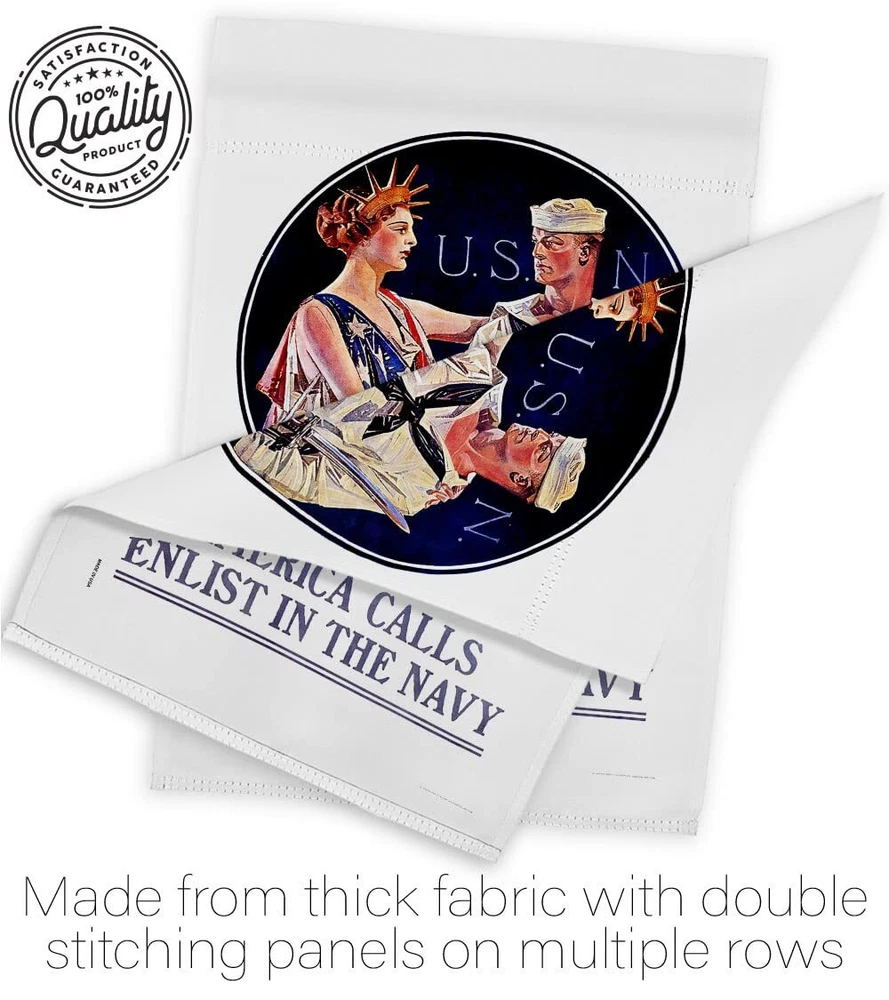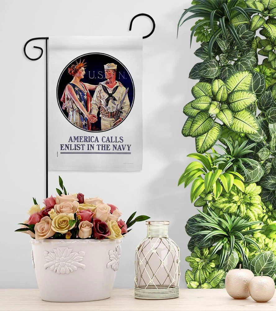 Enlist in The Navy Garden Flag Set Wall Holder Armed Forces USN Seabee United...