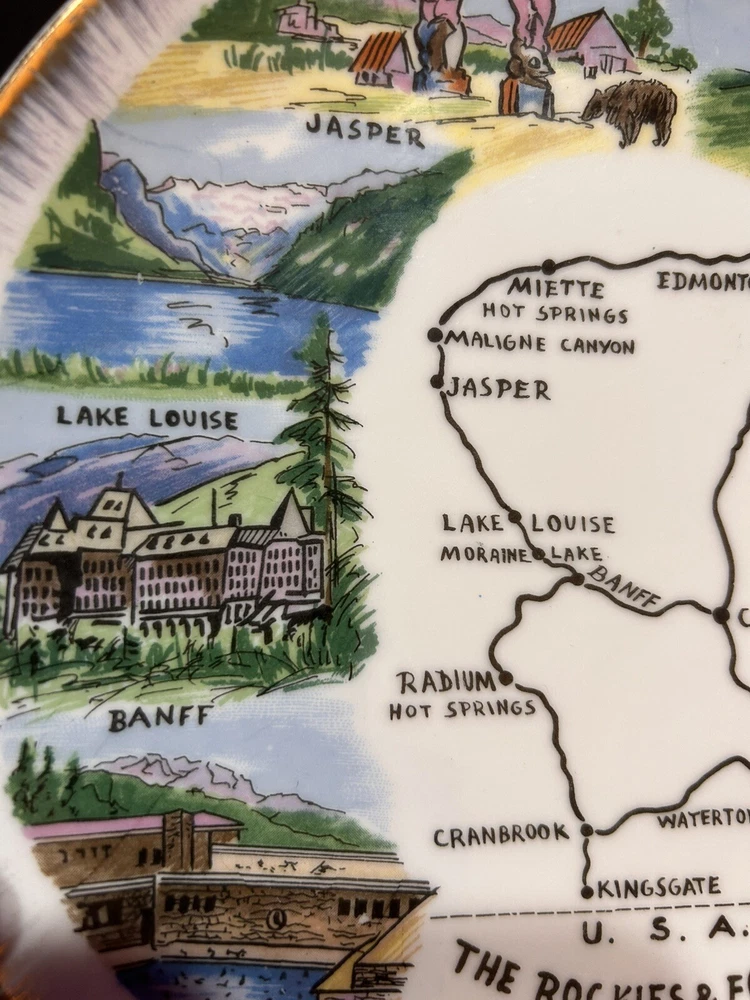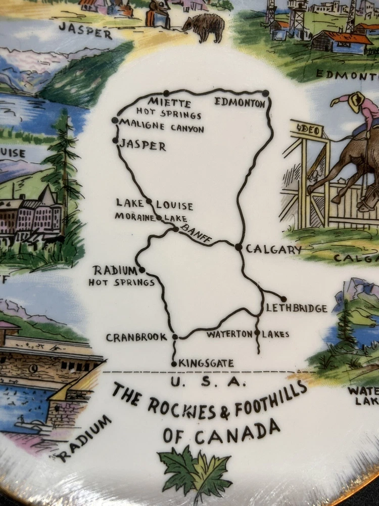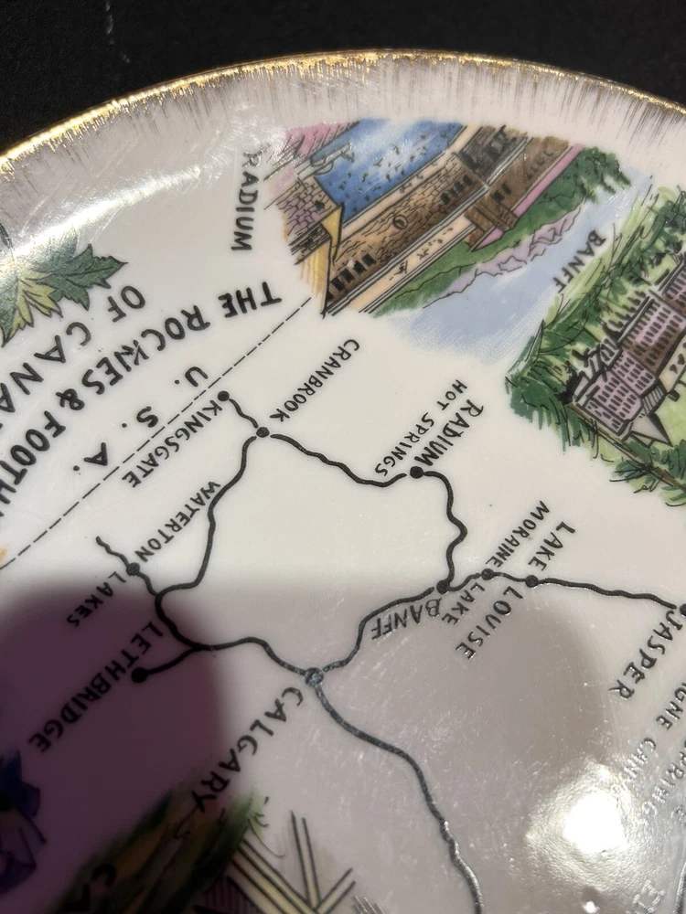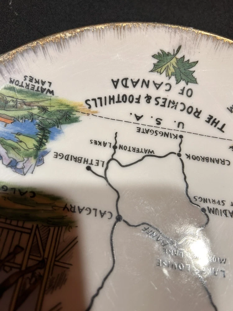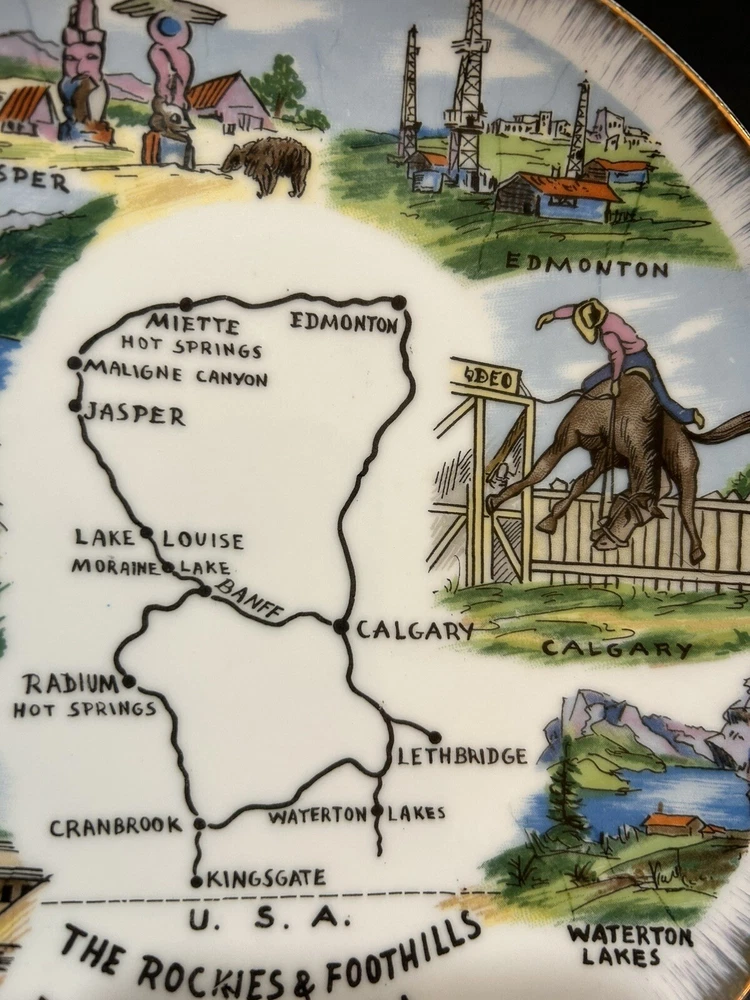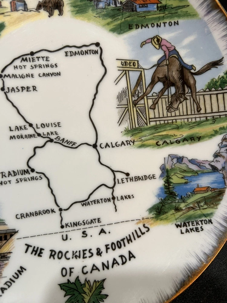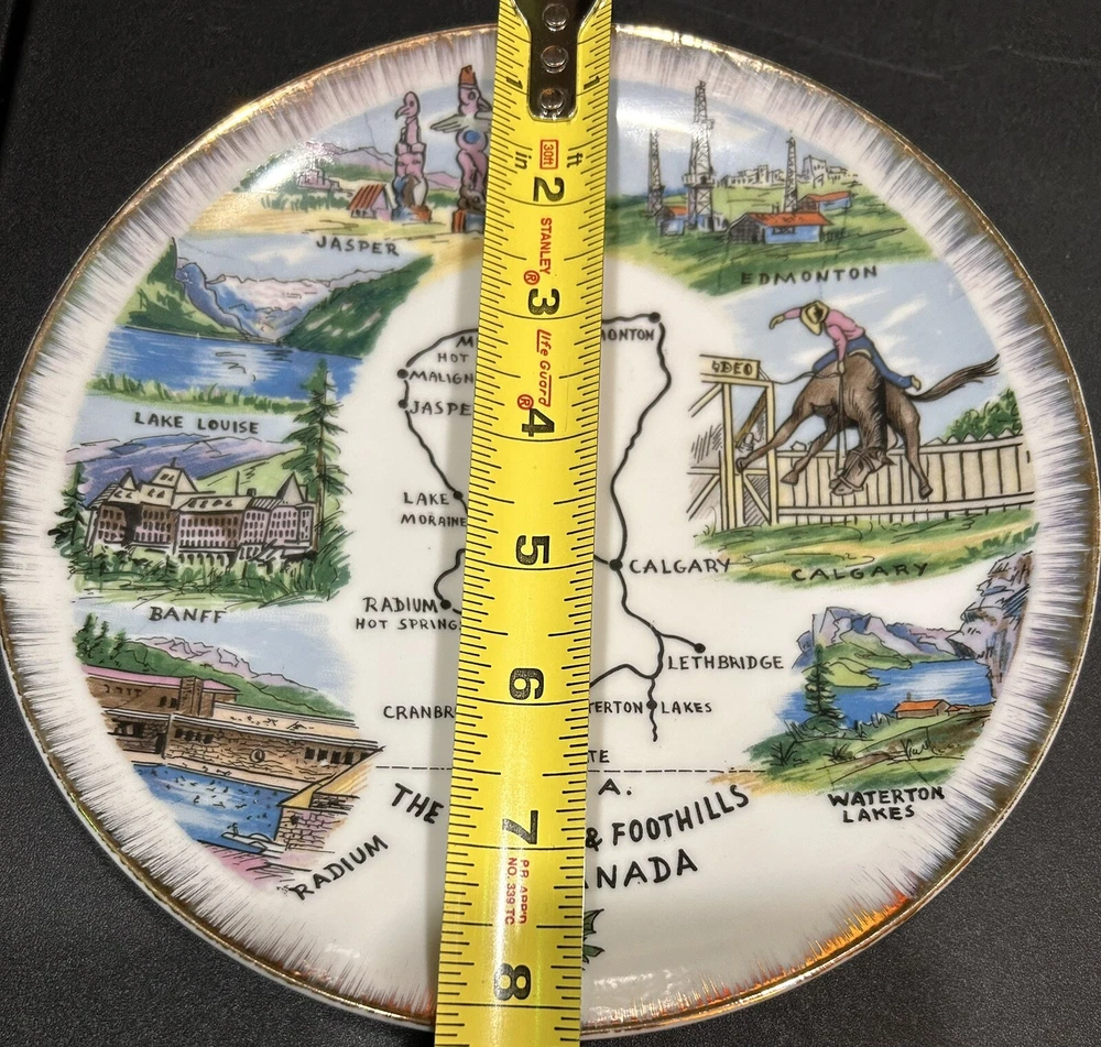 The "Enterprise Exclusive The Rockies Foothills Of Canada Souvenir Plate" is a round collector plate made of ceramic, featuring a hand-painted design showcasing the beautiful Rockies foothills of Canada. This decorative plate is a souvenir item that captures the essence of Canadian culture. With a multicolor design and a style suitable for all occasions, this plate is a unique piece that would make a lovely addition to any collector's display. Made in Japan, this plate is sure to be a treasured item for those who appreciate Canadian scenery and craftsmanship. PLEASE LOOK AT PHOTOS FOR ANY FLAWS! Thank you! Open To Reasonable Offers I ship Same Or Next Business Day If You Have Any Questions Please Feel Free To Message Me Thank You For Looking At This Item