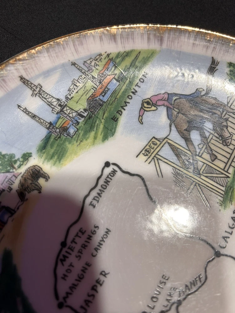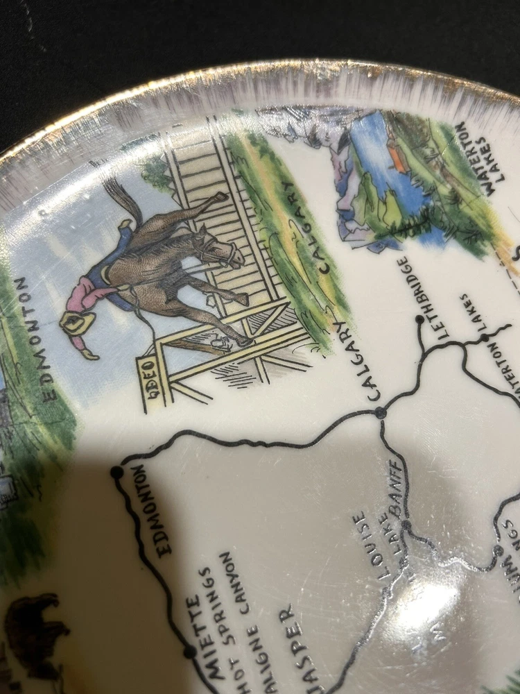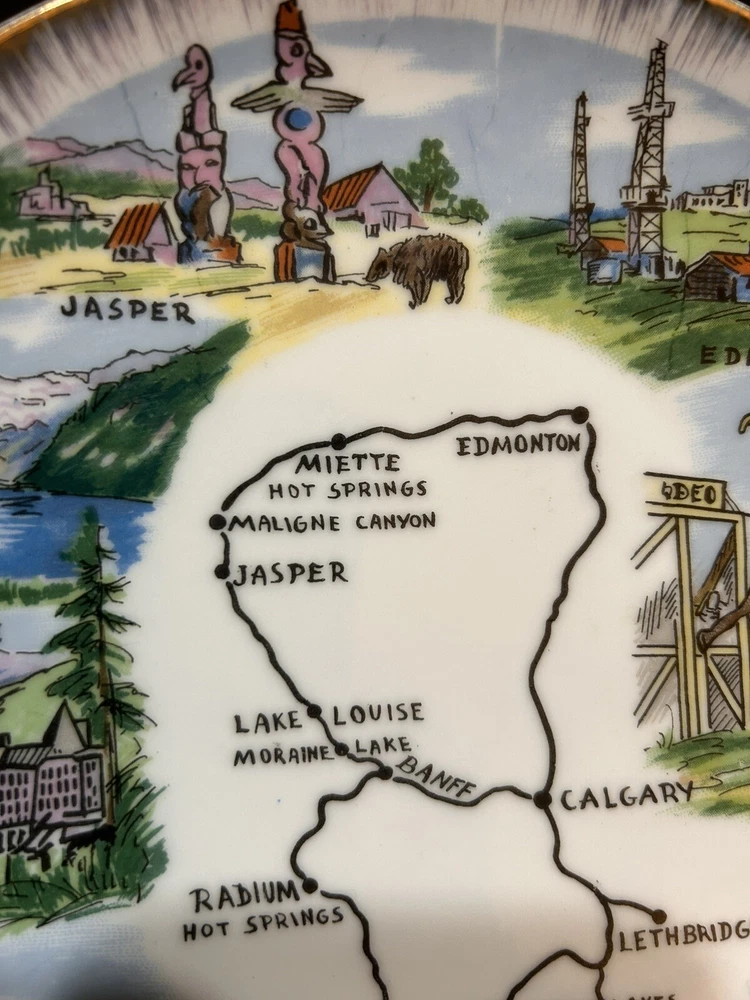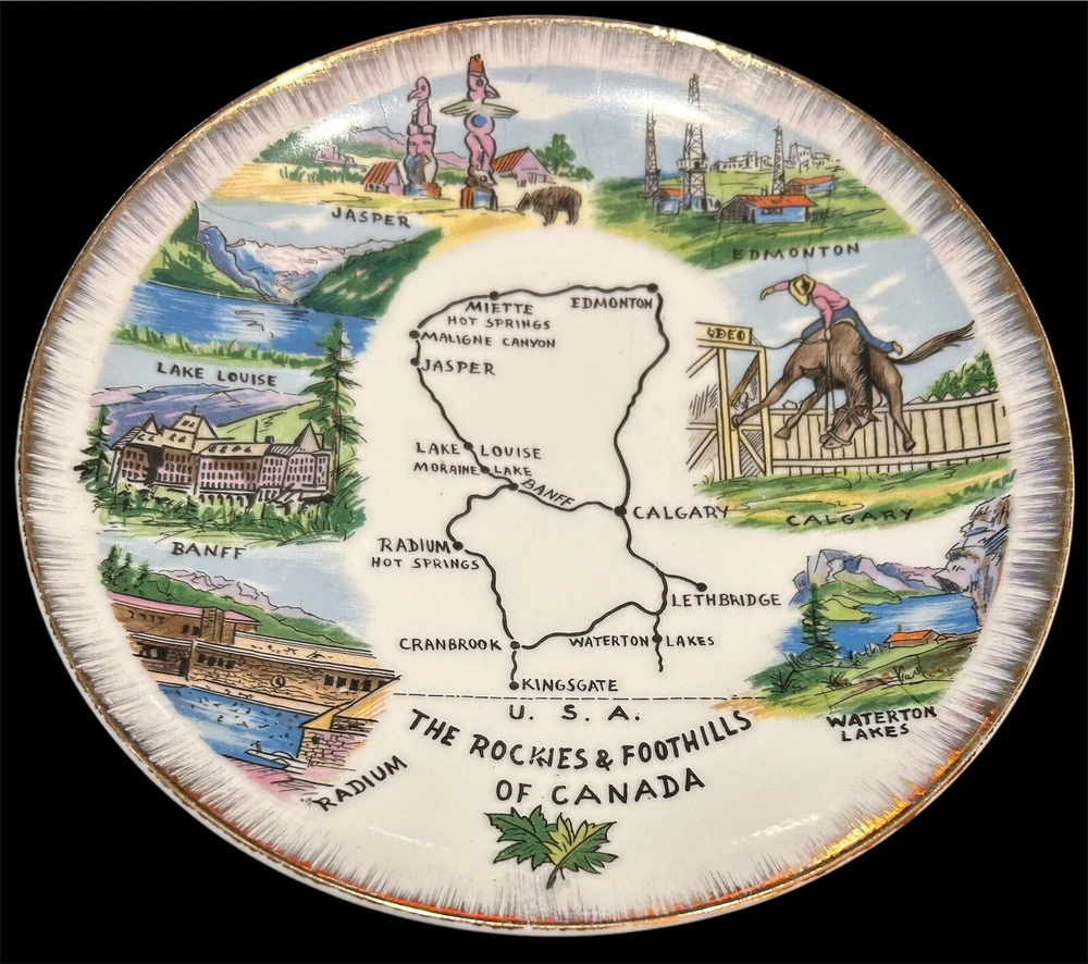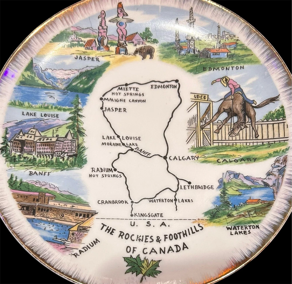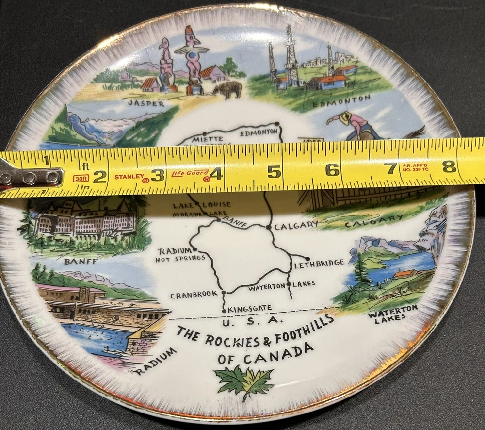 The "Enterprise Exclusive The Rockies Foothills Of Canada Souvenir Plate" is a round collector plate made of ceramic, featuring a hand-painted design showcasing the beautiful Rockies foothills of Canada. This decorative plate is a souvenir item that captures the essence of Canadian culture. With a multicolor design and a style suitable for all occasions, this plate is a unique piece that would make a lovely addition to any collector's display. Made in Japan, this plate is sure to be a treasured item for those who appreciate Canadian scenery and craftsmanship. PLEASE LOOK AT PHOTOS FOR ANY FLAWS! Thank you! Open To Reasonable Offers I ship Same Or Next Business Day If You Have Any Questions Please Feel Free To Message Me Thank You For Looking At This Item