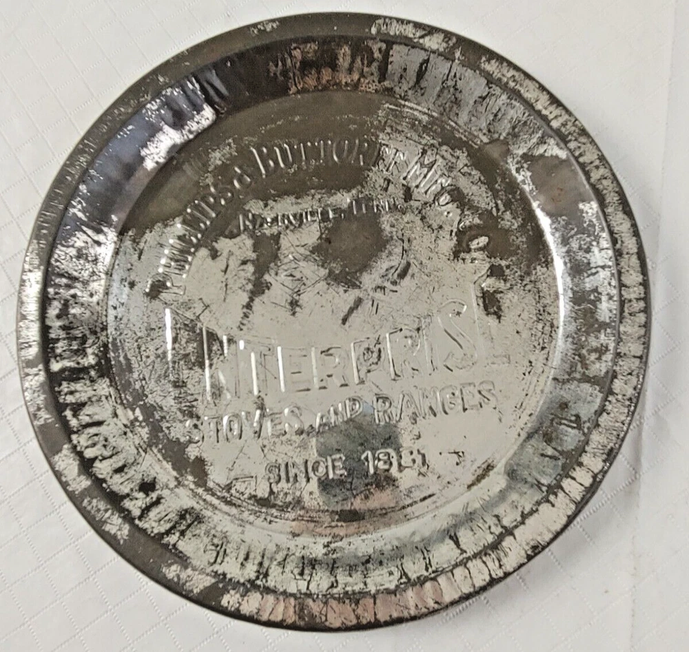 Country/Region of Manufacture: United States Color: Silver Brand: Enterprise Stoves & Ranges Theme: Appliances Type of Advertising: Pie Tin