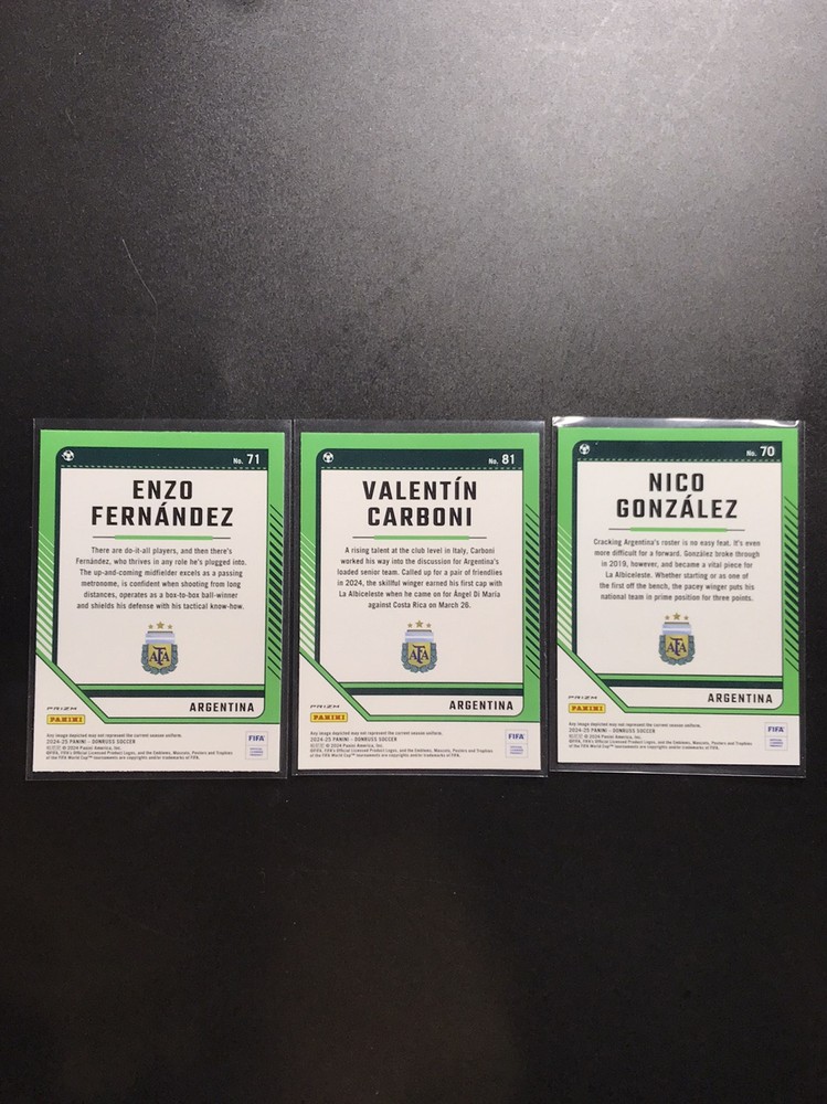 Enzo Fernandez Carboni González 2024-25 Panini Donruss Optic FIFA Trio Lot