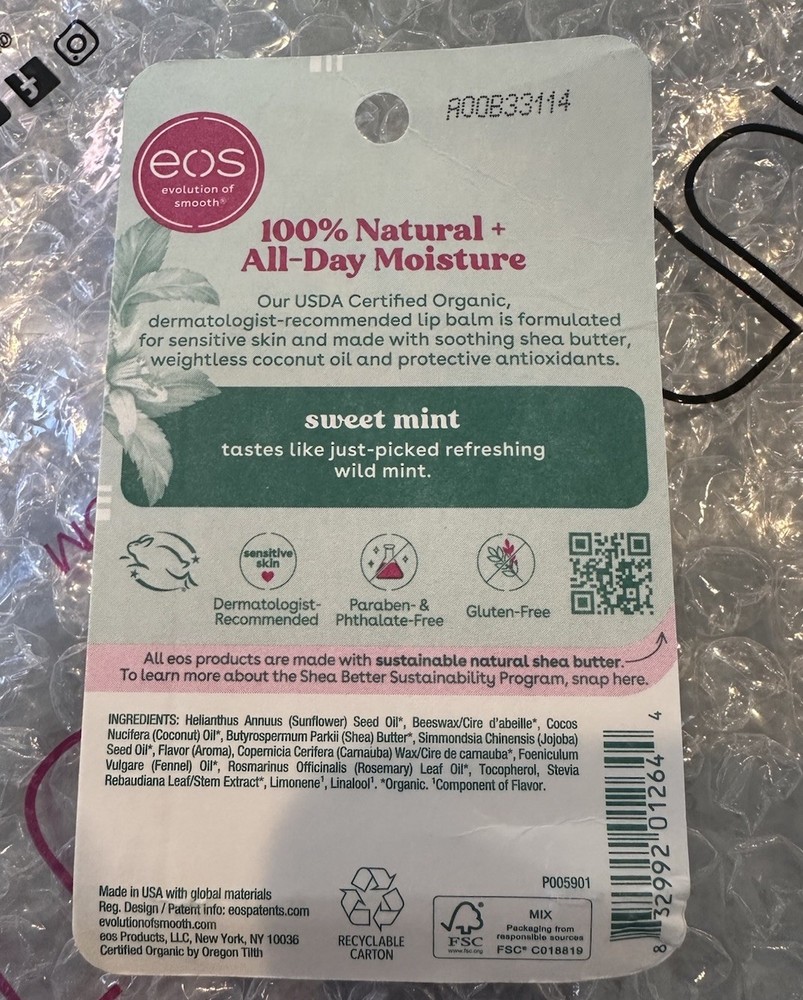 Eos Organic Lip Balm-Sweet Mint Twin Pack .14oz Each.