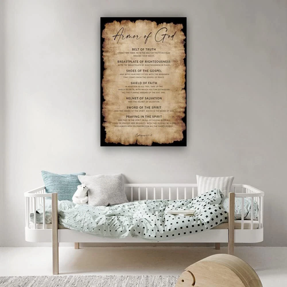 Ephesians 6 14-18 Armor of God Bible Verse Wall Art Vintage Prayer Poster