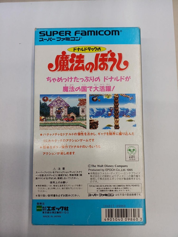 Epoch SHVC-P-ADDJ Donald Duck's Magical Hat 【This item includes applicable import fees. you won’t pay anything extra after checkout. Supported countries: USA only】 【Customs duties】 This item includes applicable import fees. you won’t pay anything extra after checkout. Supported countries: USA only (Does not include countries outside the United States) 【Item Description】 Because we have a large number of items, our product descriptions may be brief. The actual product will be exactly as shown in the image. Please feel free to ask any questions you may have before purchasing. 【Shipping】 Using standard shipping (Japan Post, FedEx or DHL), an estimated delivery date will be around 5-14 days after shipment. We send it with your tracking number, so that you can track the delivery status anytime. Shipping is only available to addresses registered on eBay. If you would like to send an item to a different address, please update your shipping address on eBay before you complete your purchase. 【Payment】 eBay's recommended payment methods are available. You will be able to pay with credit card, debit card, Apple Pay, Google Pay, or PayPal. 【For International Buyers(Excluding buyers from the USA)】 Import duties, taxes, and charges aren't included in the item price or shipping charges. These charges are the buyer's responsibility. Please check with your country's customs office to determine what these additional costs will be prior to bidding or buying. 【Caution】 Button/coin batteries can cause severe injuries or even death when swallowed. Keep batteries out of reach of children. If you suspect a child has swallowed or inserted a button/coin battery, seek medical attention immediately.
