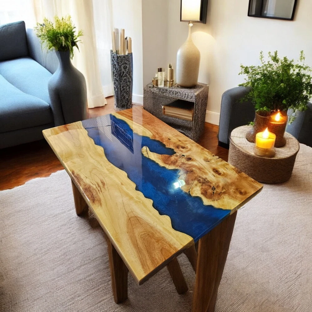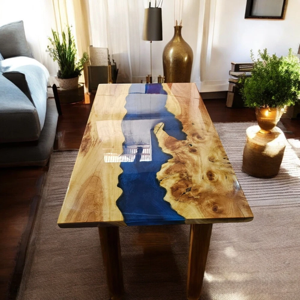 Table Top Size: 48"x24" Inches Stand Size: 28.5" Inches Tall Our epoxy tables are custom-made, and we strive to use the same type of wood as depicted in our advertising pictures. However, it is not always possible to find an exact match, which may result in slight variations in the epoxy color and wood grain pattern. It's important to keep in mind that the table you receive may not be an exact replica of the advertising picture. We ensure that our clients are informed of every step of the process, from the selection of the wood to the final finish of the table. We keep our clients up-to-date throughout the process to ensure transparency and avoid any misunderstandings. Additionally, our price includes air delivery right to your doorstep via DHL/Fedex/UPS and insurance protection. Please note that you may be responsible for paying any applicable tax and duty on delivery. If you have any concerns or doubts, we highly recommend addressing them before making a purchase. Clearing any doubts beforehand will help avoid any issues and ensure a smooth buying process. It's important to note that any accessories depicted in the advertising images, such as knives, chairs, or lighting, are not included with the product and are only used for photography purposes. We recommend addressing any questions or concerns before making a purchase to avoid any misunderstandings.