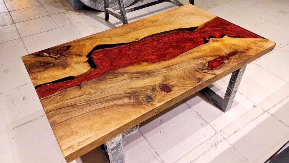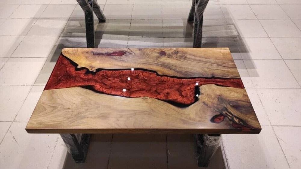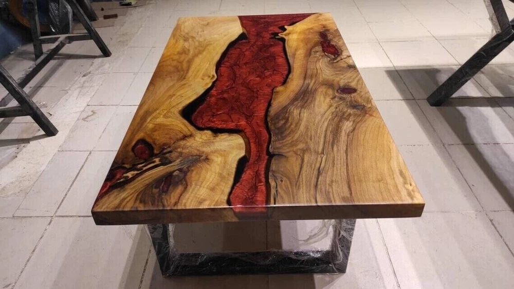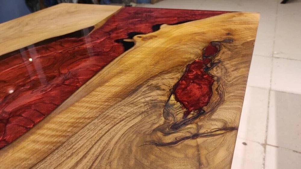 Epoxy Dining Table, Walnut Wood Epoxy Handmade Furniture River Table Top Decors